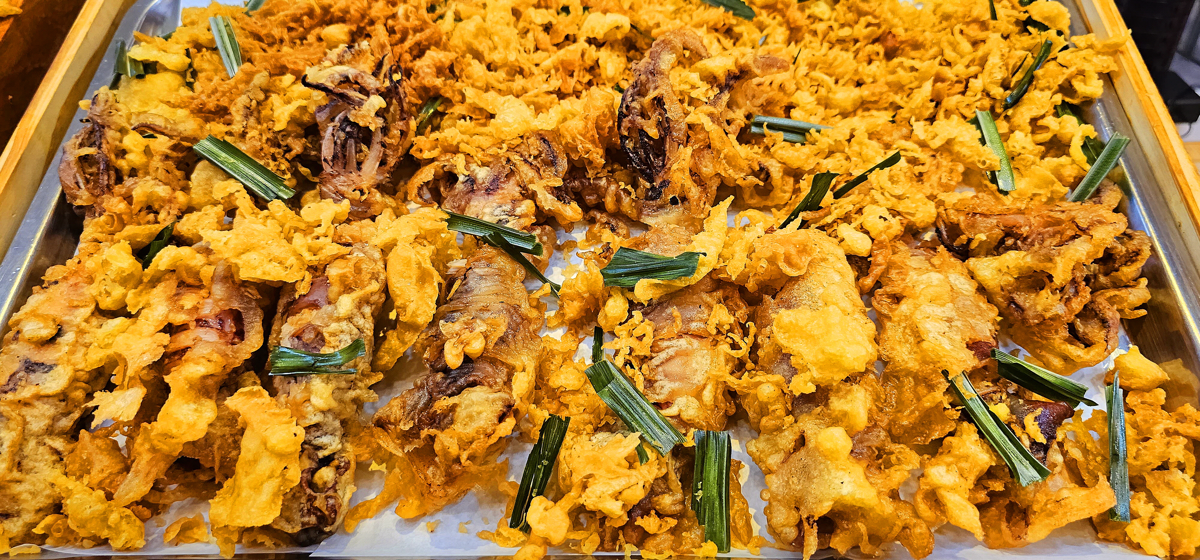 여기는 튀김이 생선 한 마리를 통째로 튀기거나 오징어 한 마리를