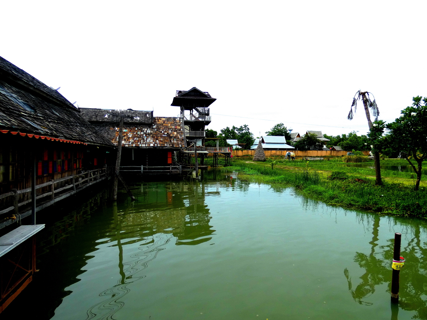 여기 수상시장 전체가 다 나무로 지어져 불이 나면
