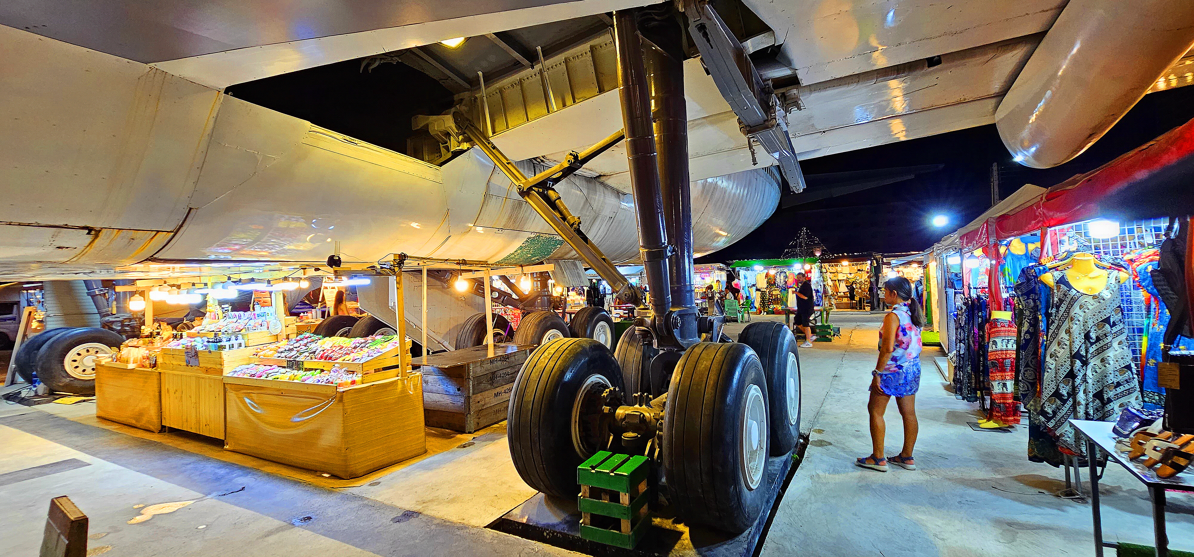 여기 야시장 특징은 비행기 한 대를 가져다 놓고 그 밑에서