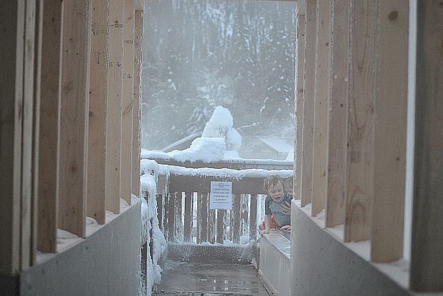 아이도 온천욕을 즐기고 있네요.