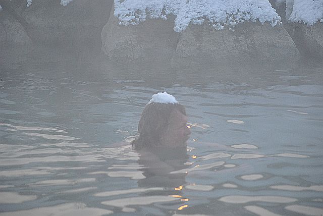 일부러 저렇게 머리 위에 눈을 얹어 놓고 온천욕을 즐깁니다.