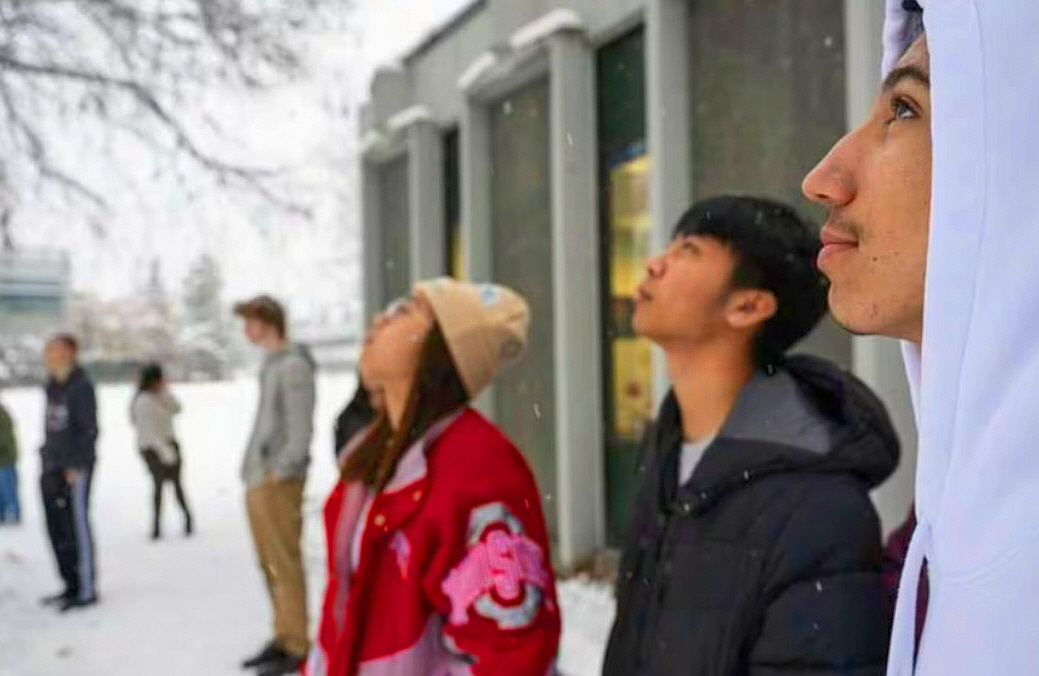 다들 눈이 내리는 장면에 넋을 잃고