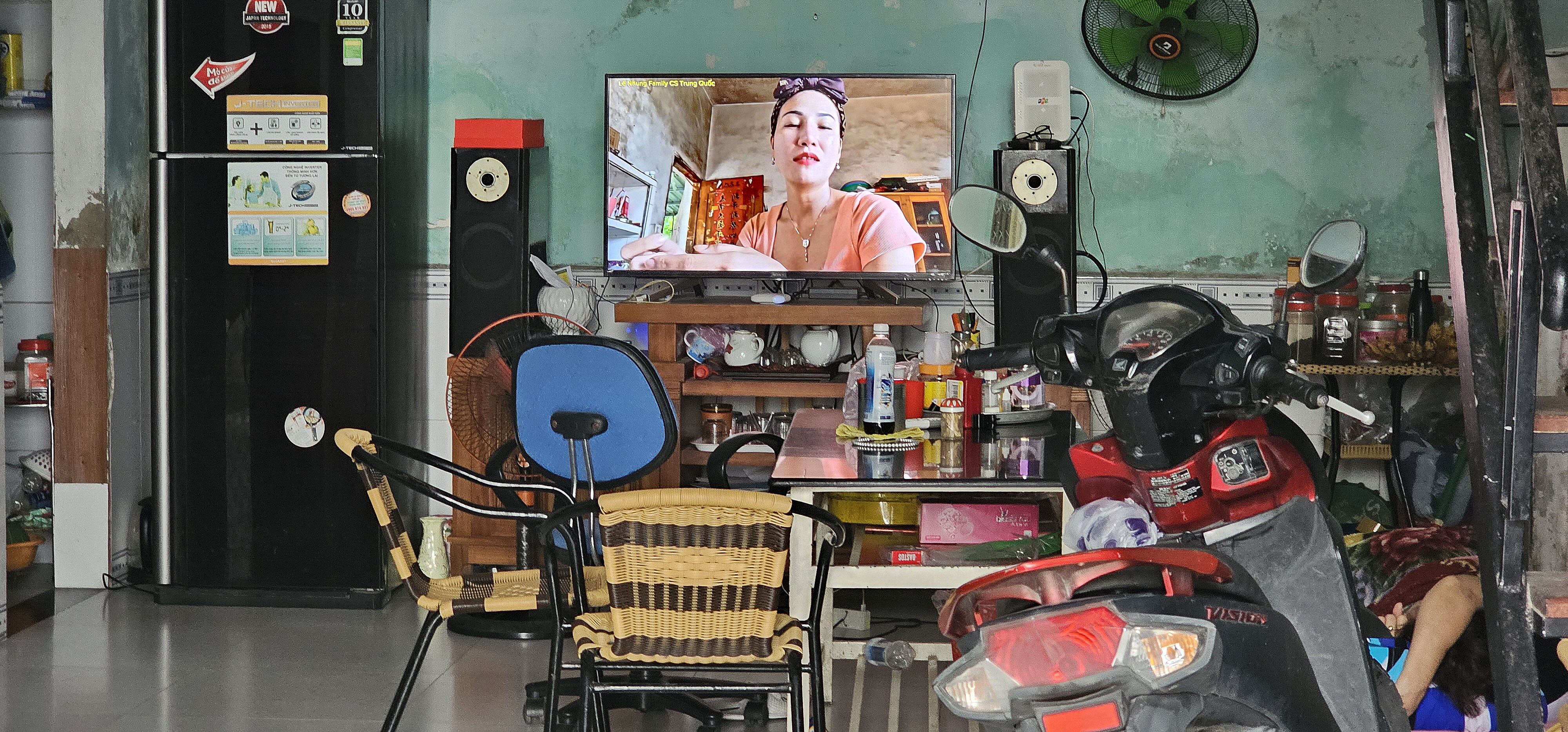 그리고, 거실에는 오토바이가 차분하게 티브이를 감상하고