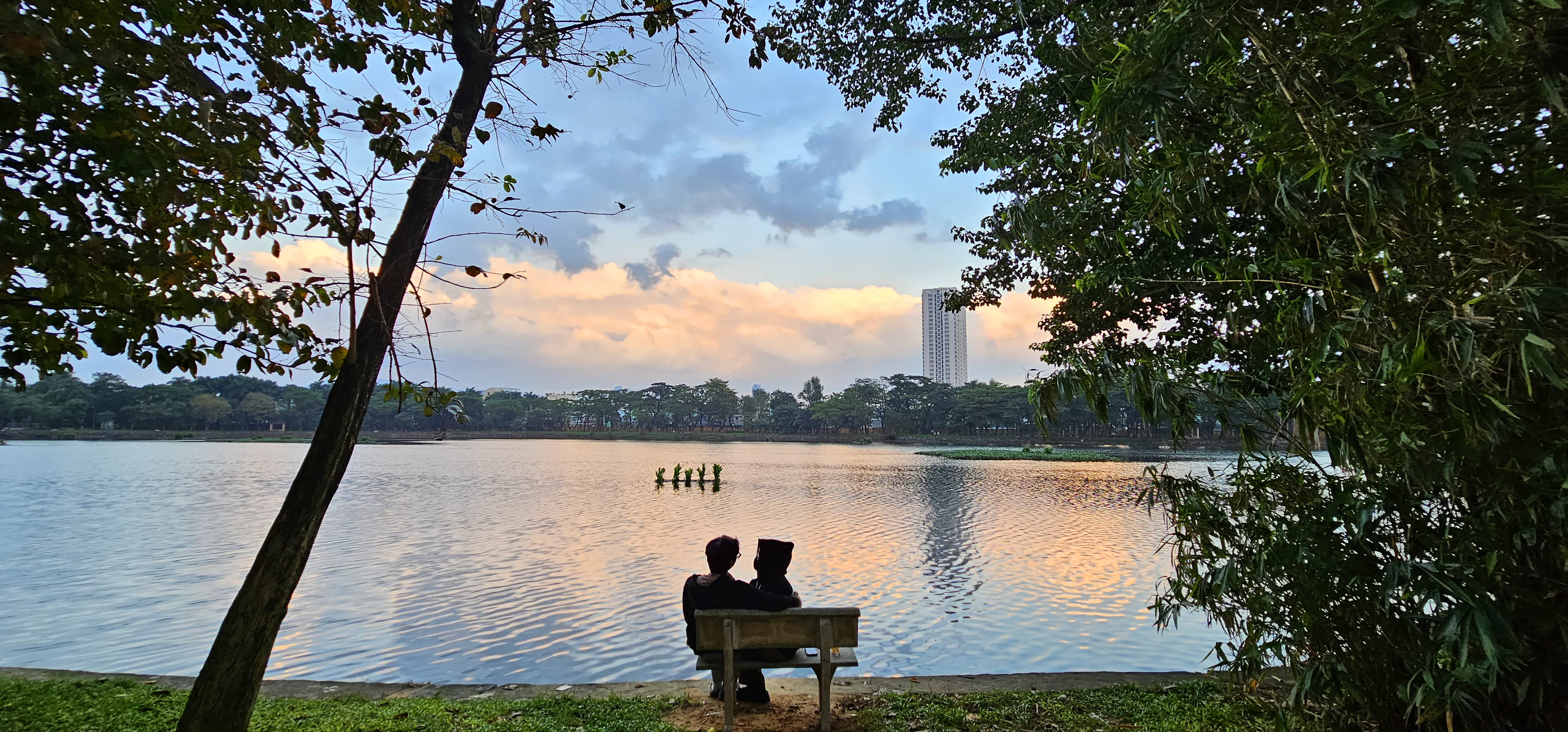 아름다운 공원에 서서히 노을이 지고 있습니다.