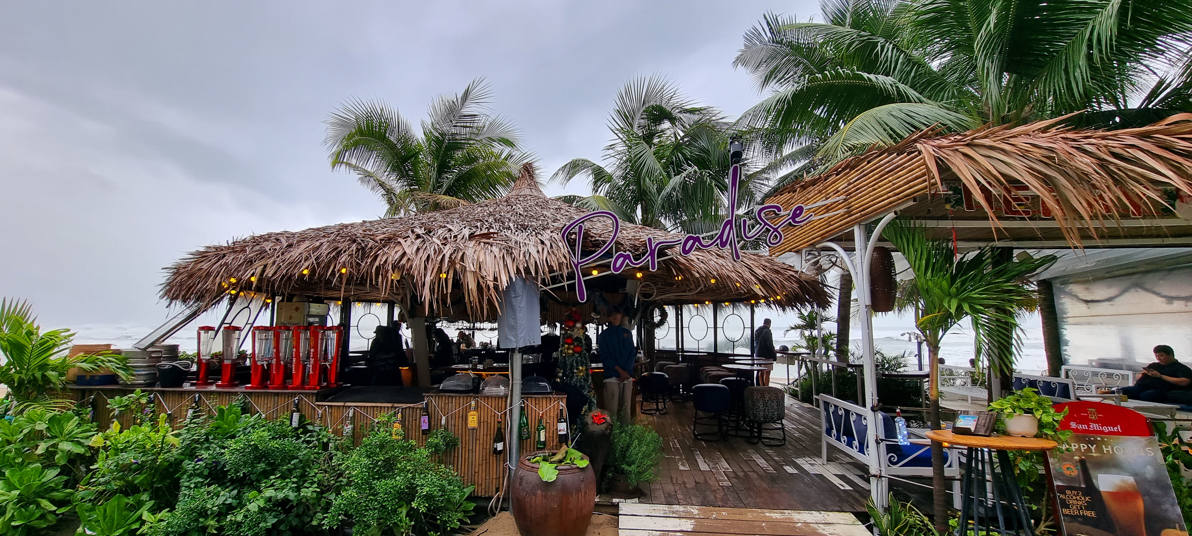 비바람이 부니, 여행객들이 이 카페로 몰려 커피를 마시며