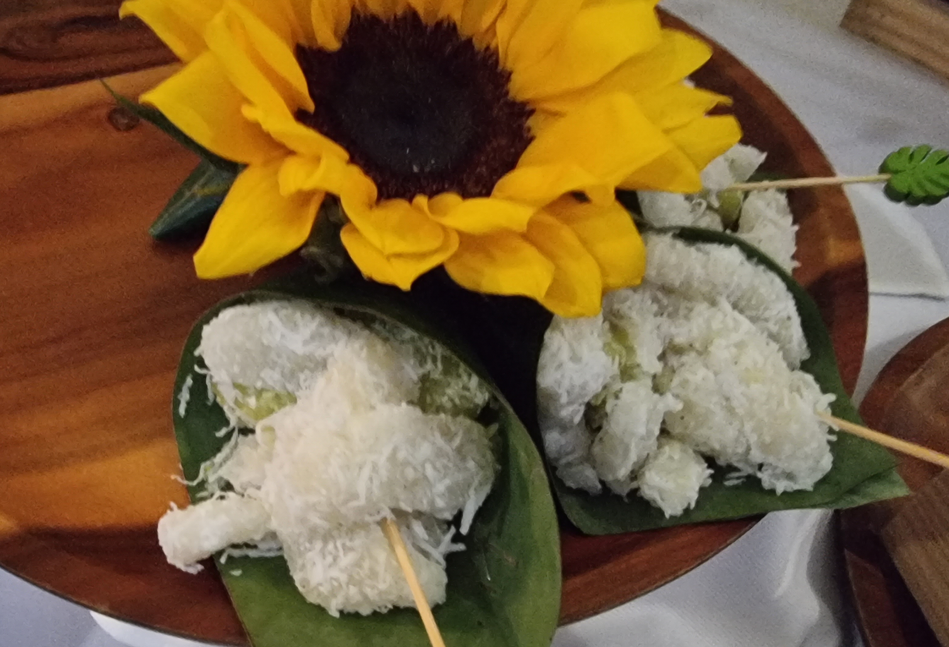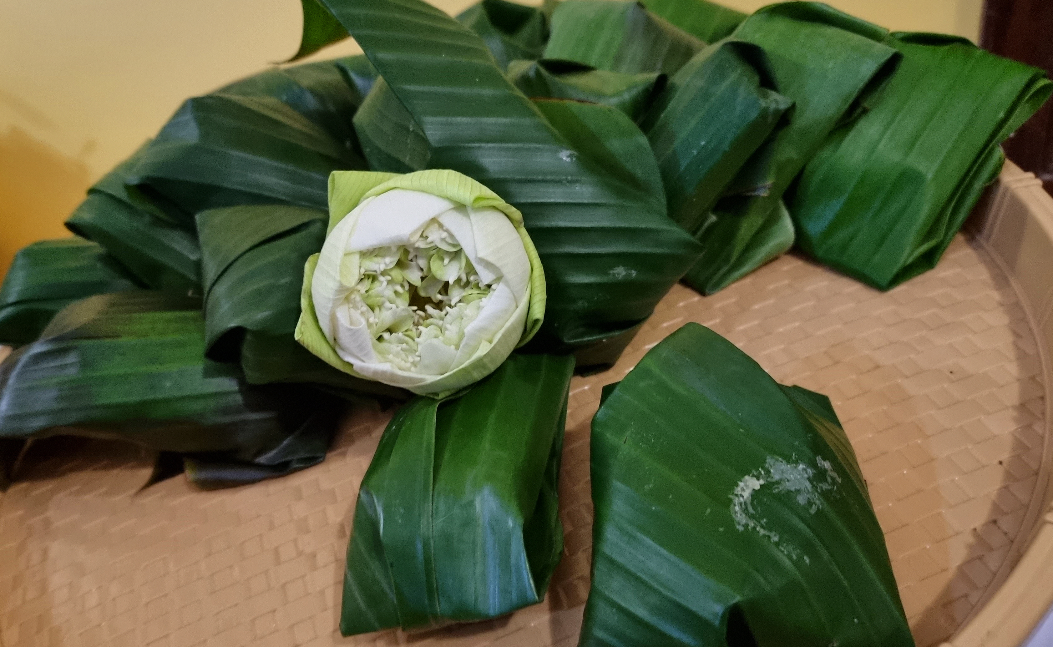 찹쌀과 녹두를 쪄서 주먹밥처럼 만들어서 바나나 껍질에 싸서 쪄낸 건데