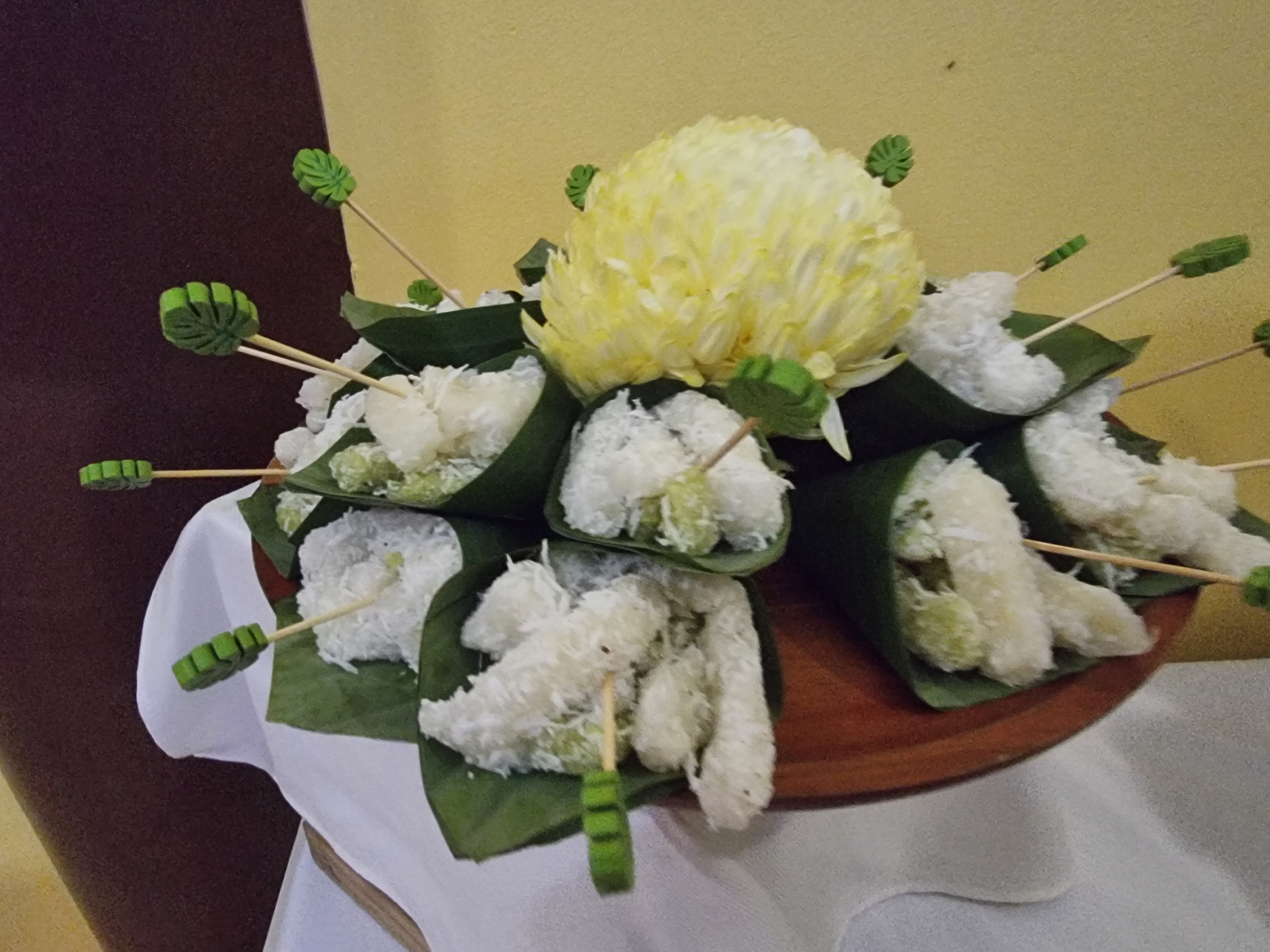 찹쌀과 녹두를 쪄서 주먹밥처럼 만들어서 바나나 껍질에 싸서 쪄낸 건데