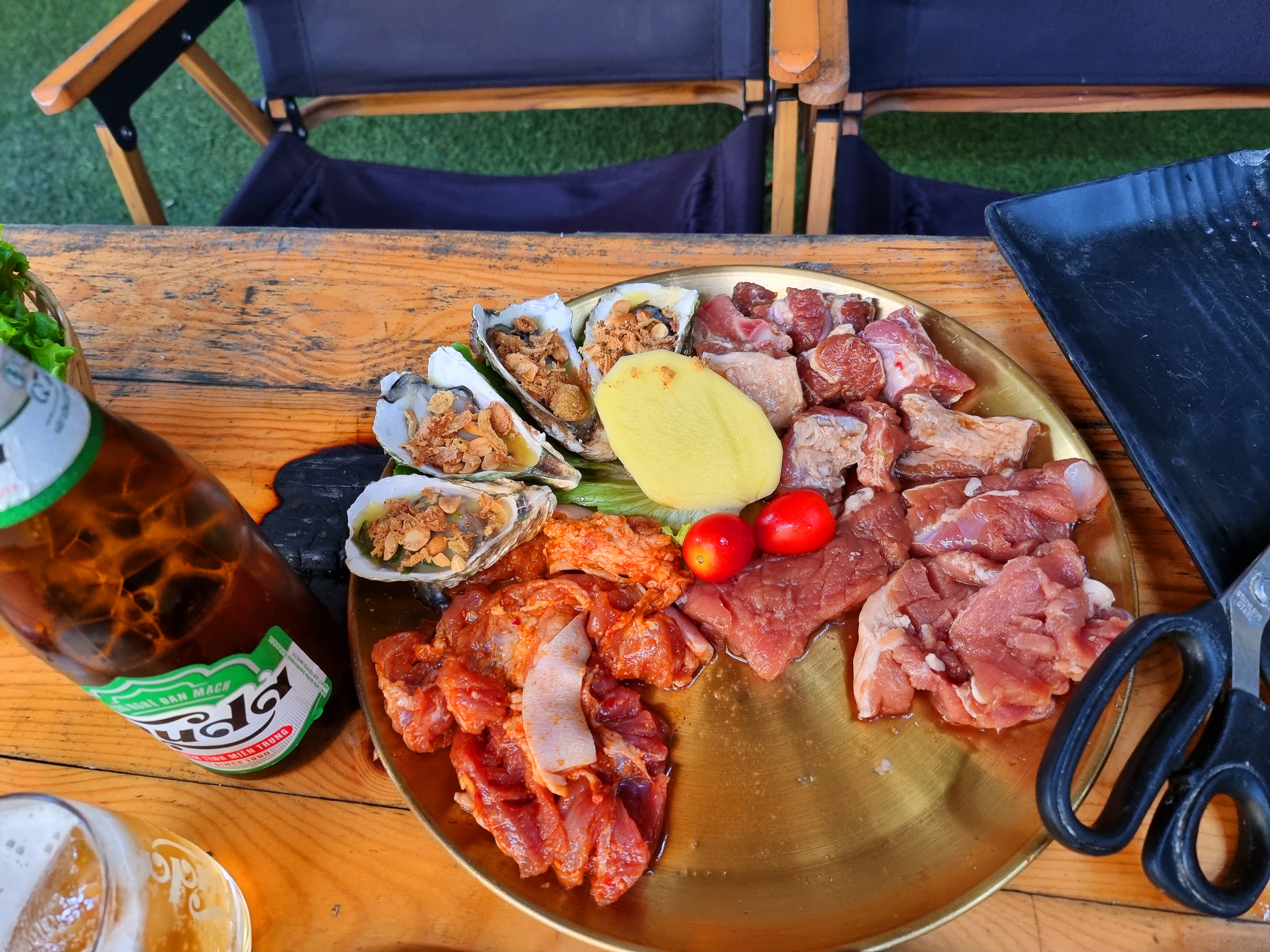 돼지갈비, 양념 닭고기, 일반 돼지고기, 굴 이렇게 모둠 세트입니다.