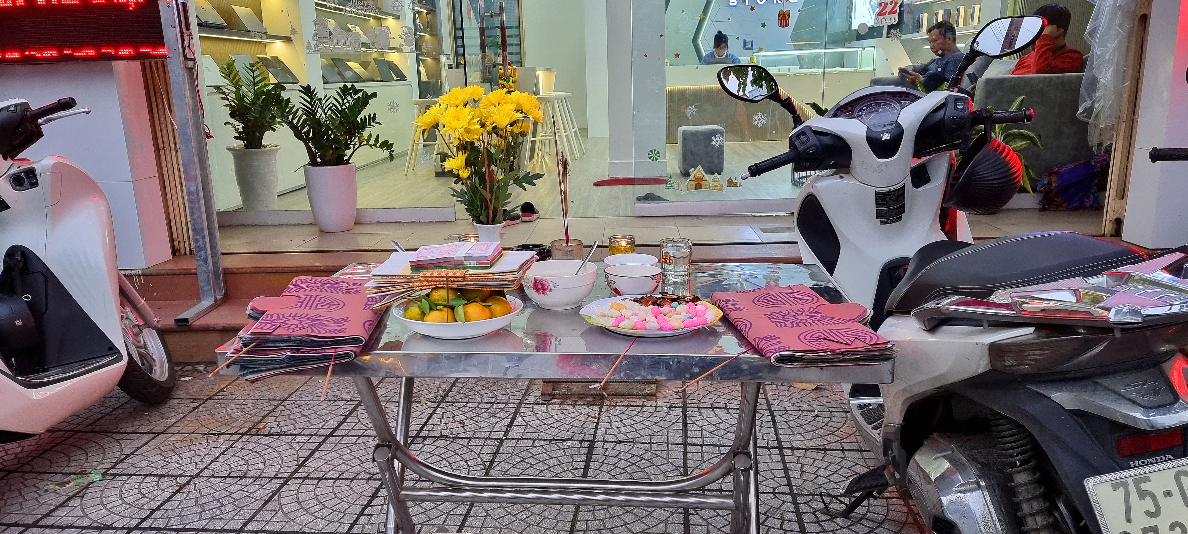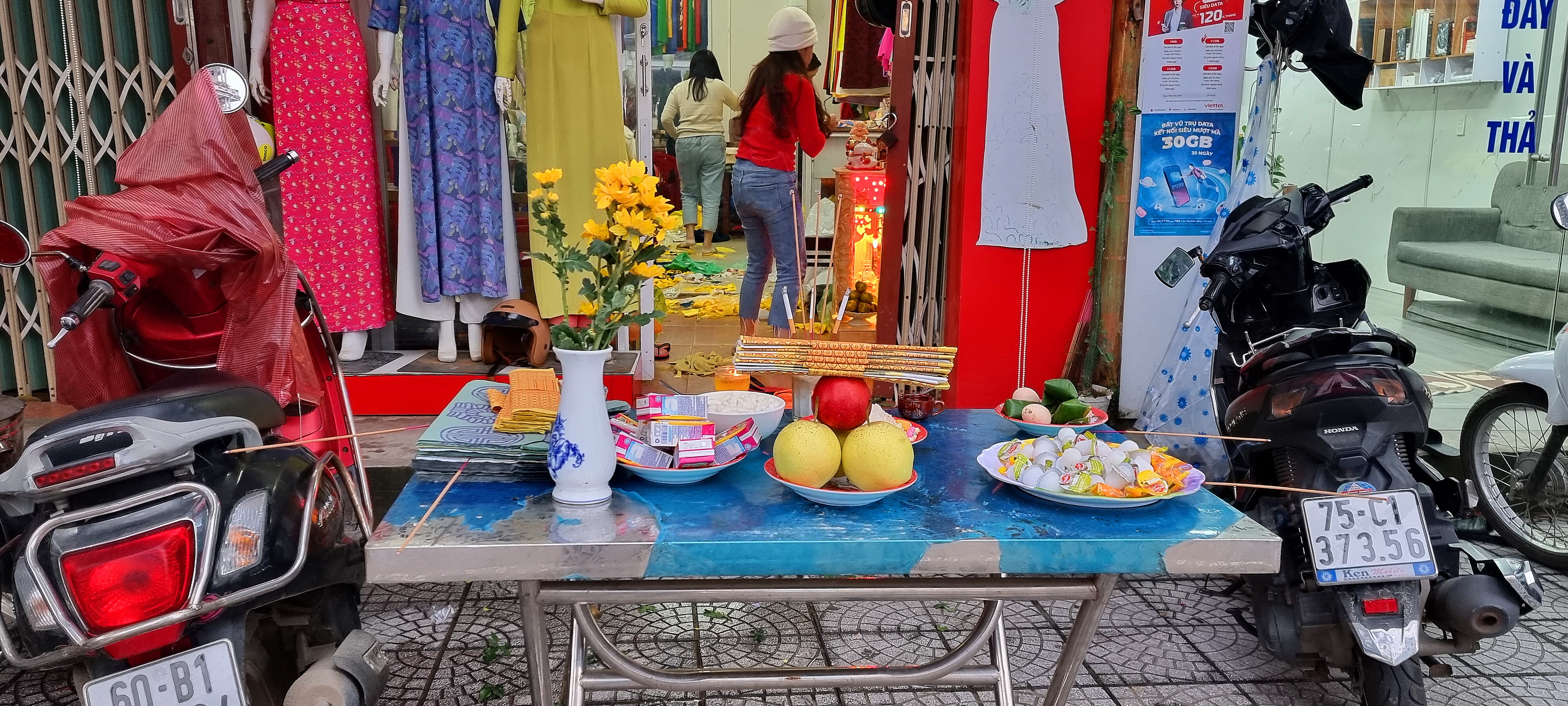 가게 앞을 막아 놓고 제단을 꾸며 놓았네요.