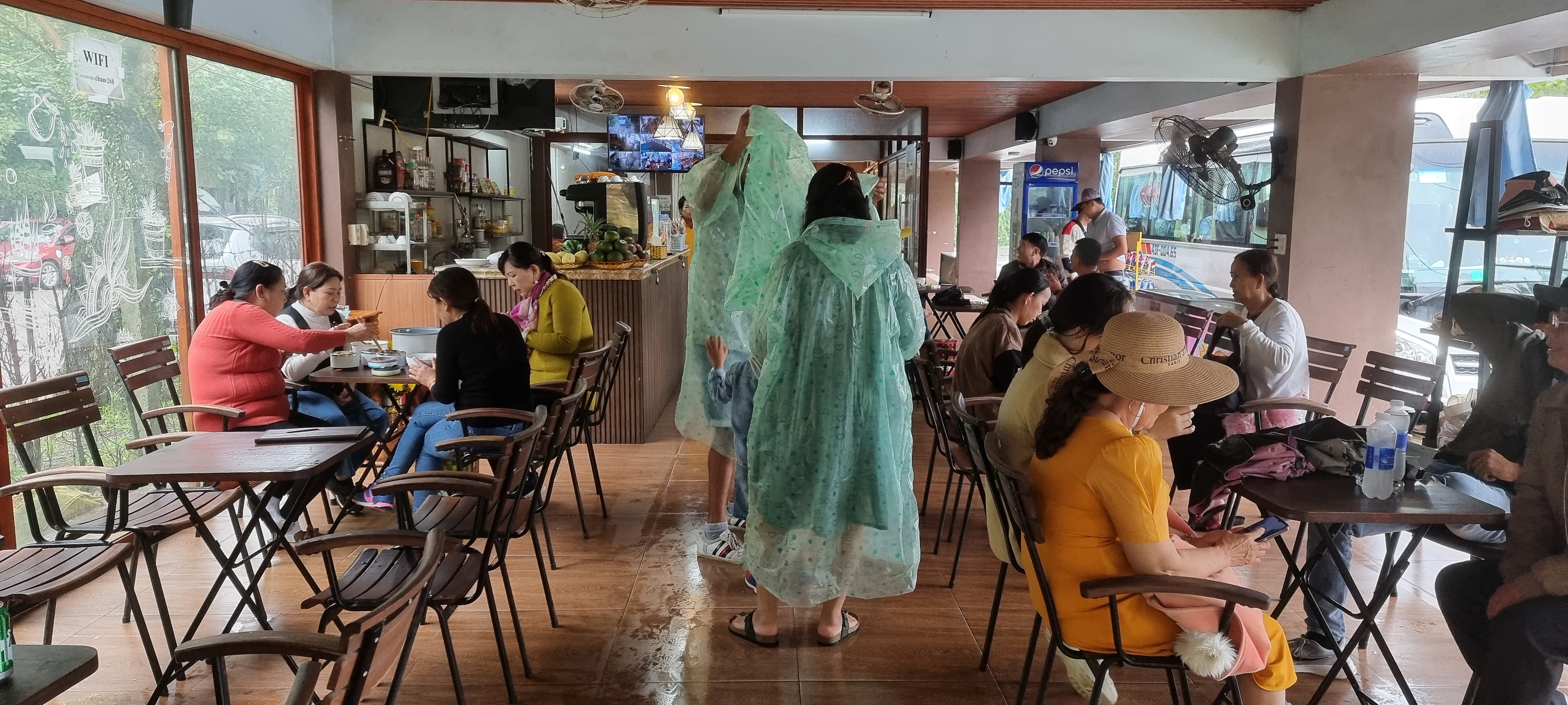 백팩을 메고, 그랩 기사분이 우비를 줘서 그걸 입고