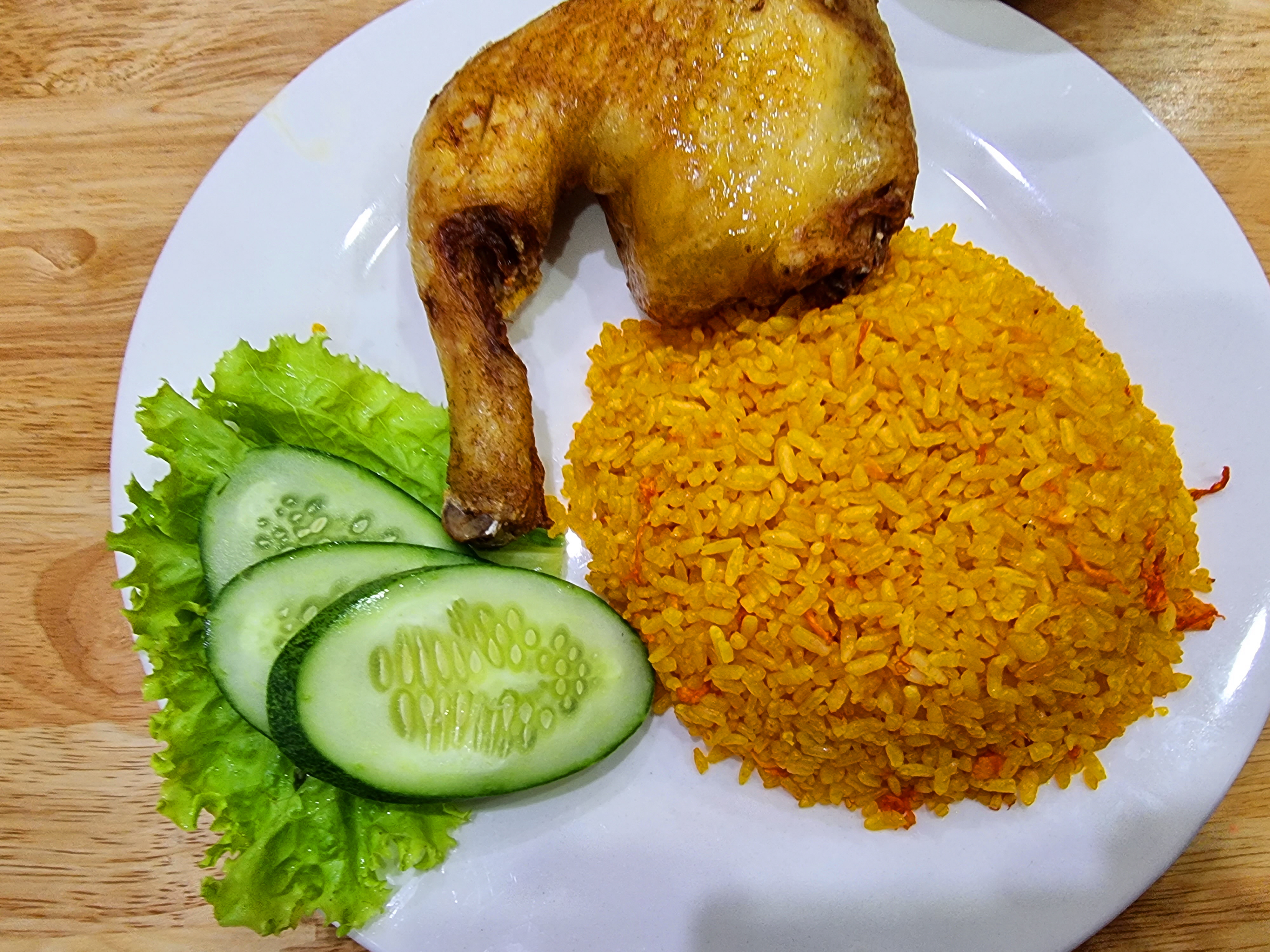 닭육수로 밥을 짓고 녹말로 색을 낸 볶음밥입니다.