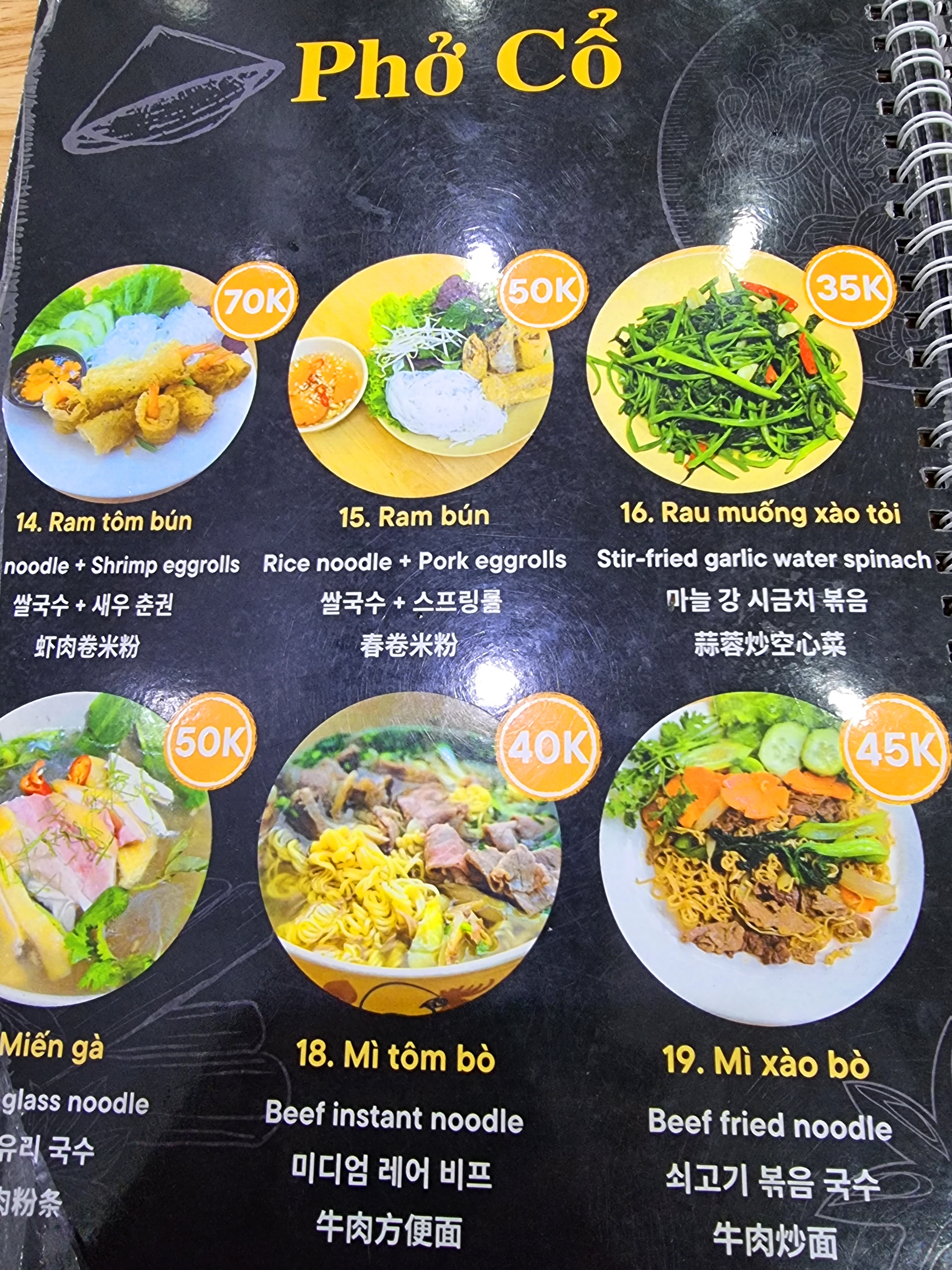 베트남에서 국수를 시키던, 요리를 주문하면