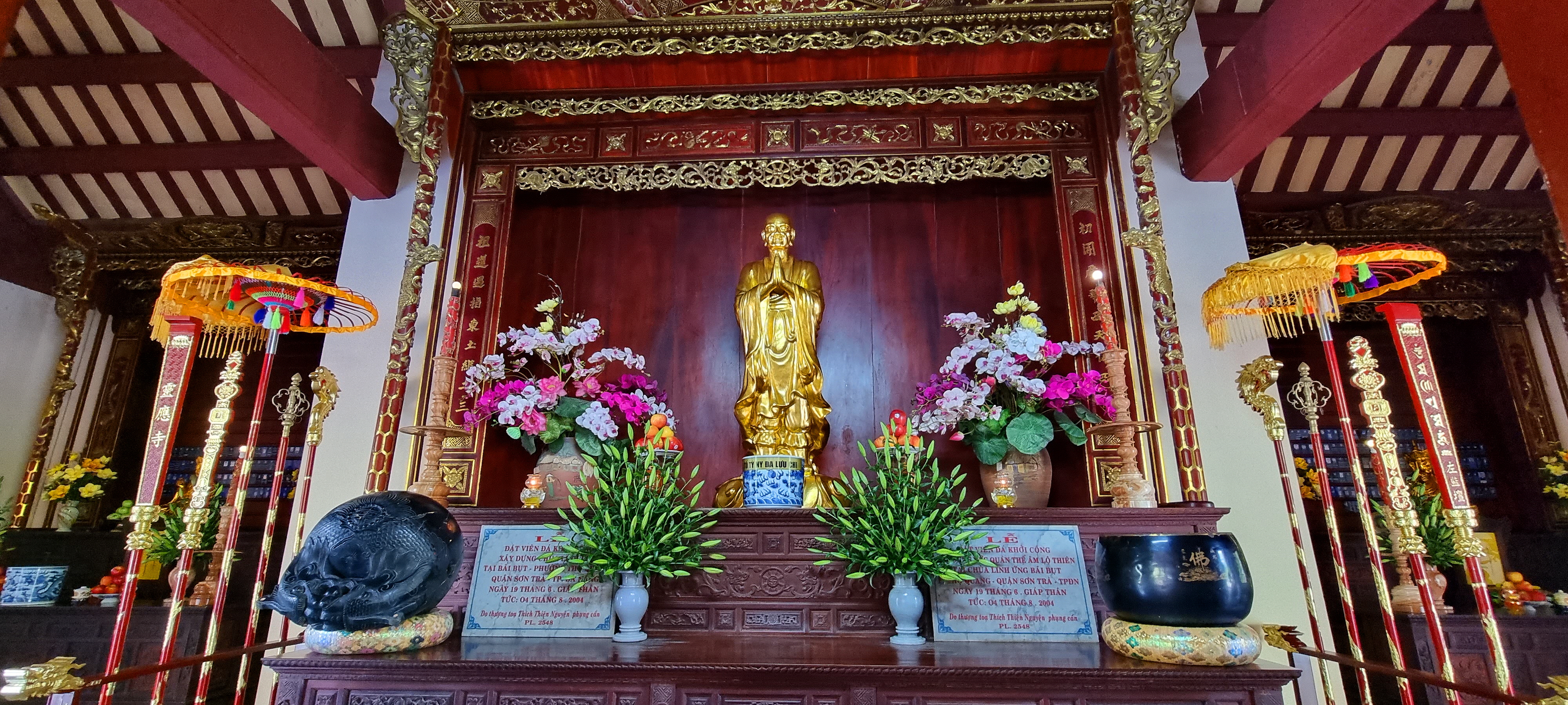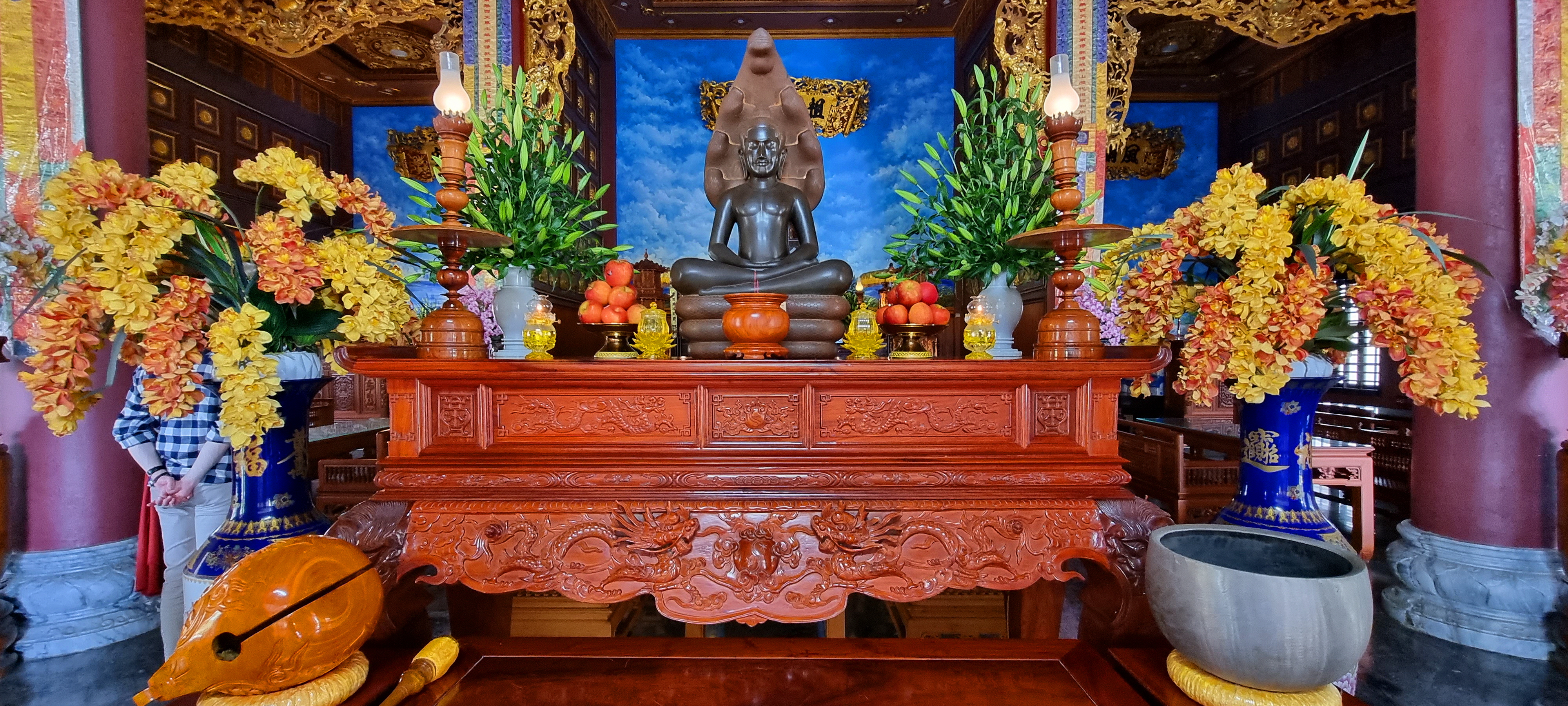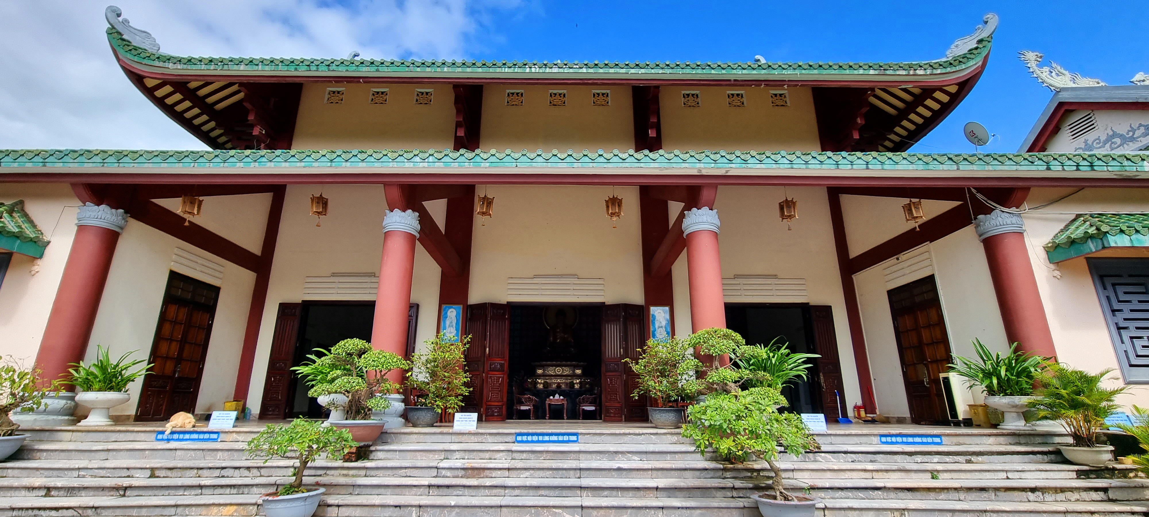 여기 본당은 용 모양의 곡선형 기와지붕으로 덮여 있으며