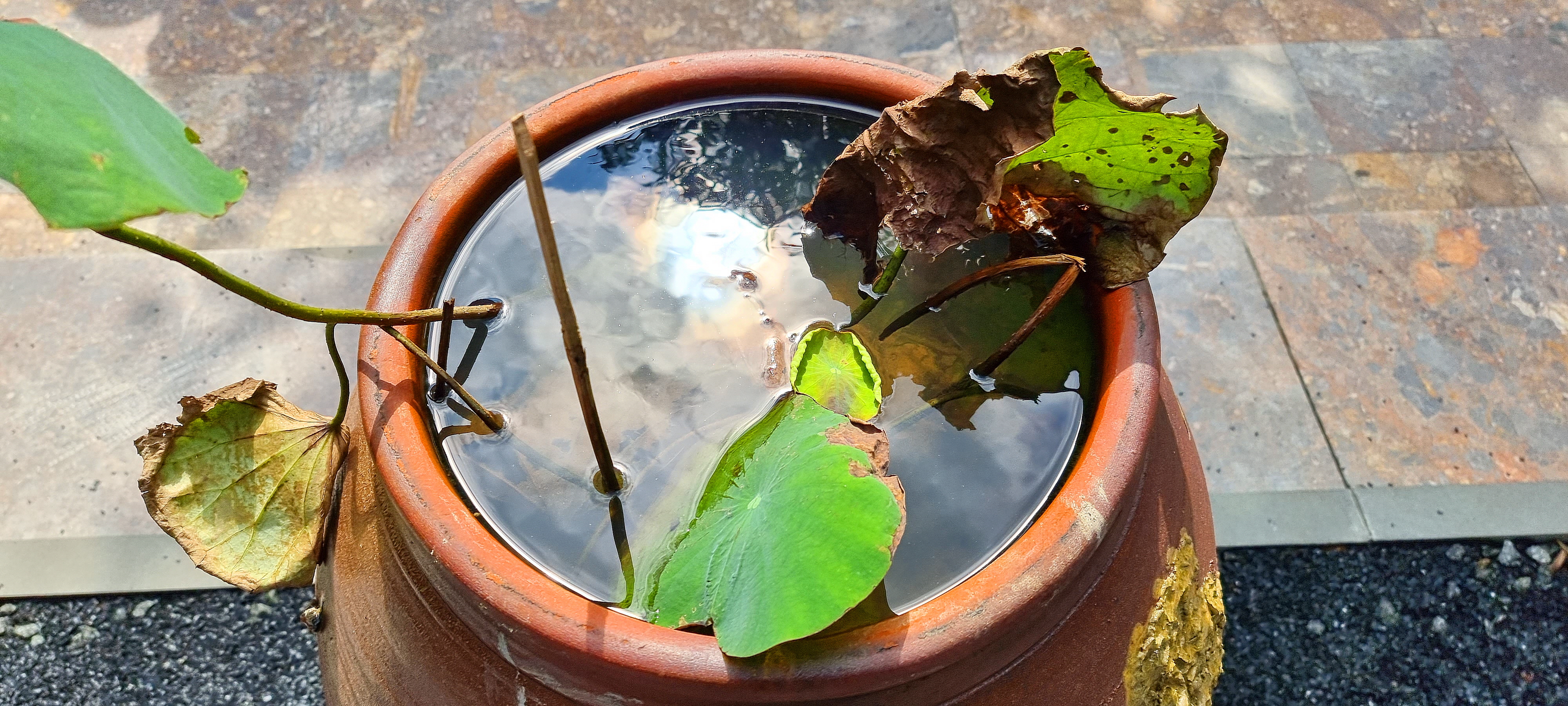 항아리에는 빗물이 고여있고 그 고인 빗물에서