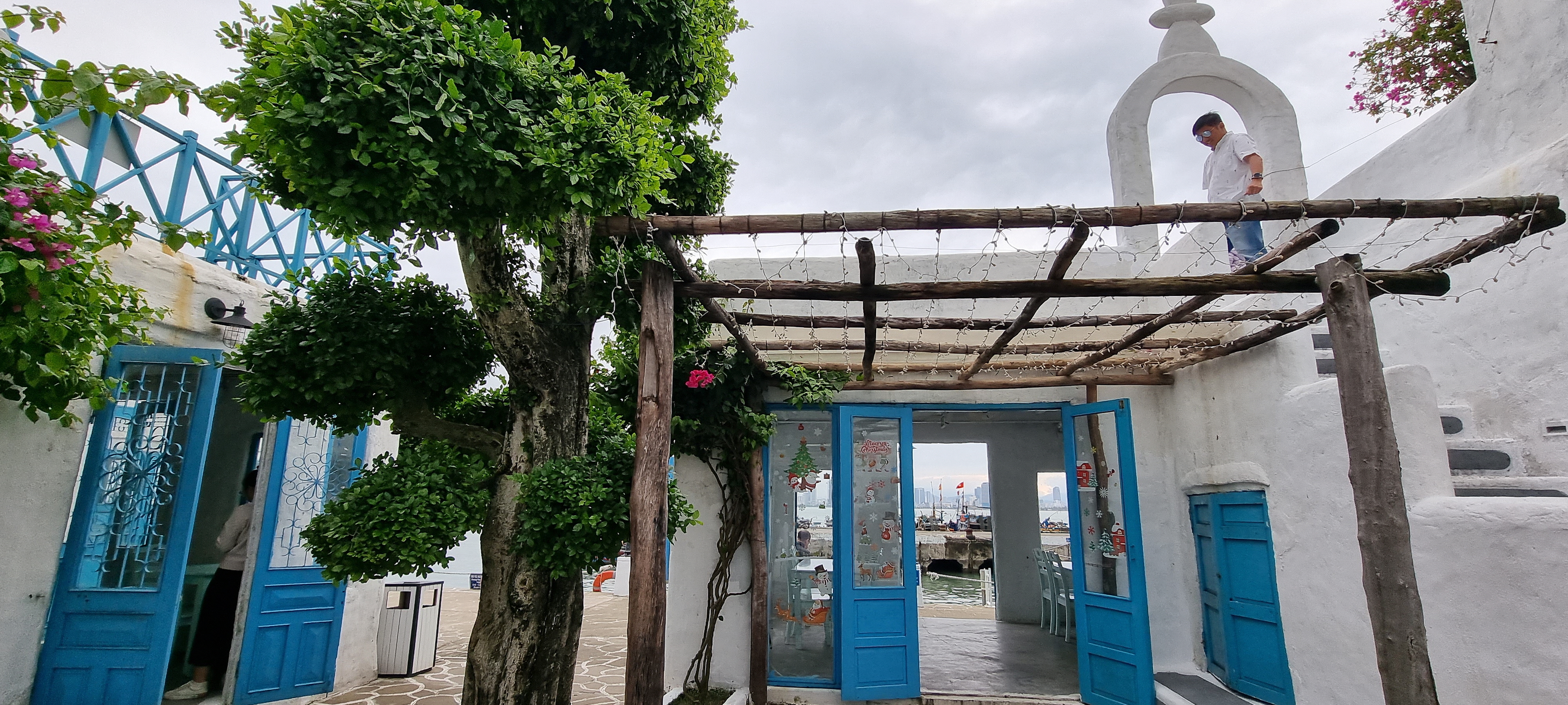 배경으로 하얀 등대 카페의 진 면목을 발견할 수
