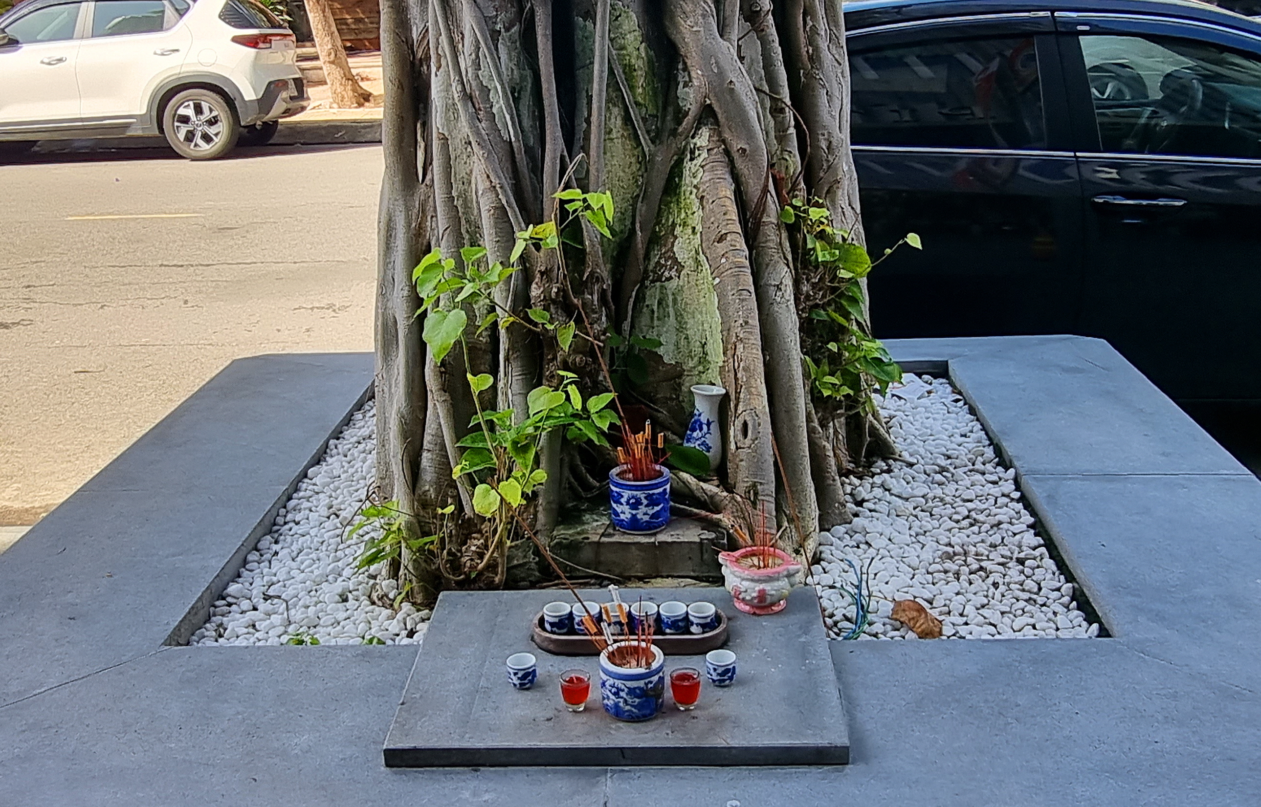 이렇게 길거리 가로수에도 제단을 차려놓고