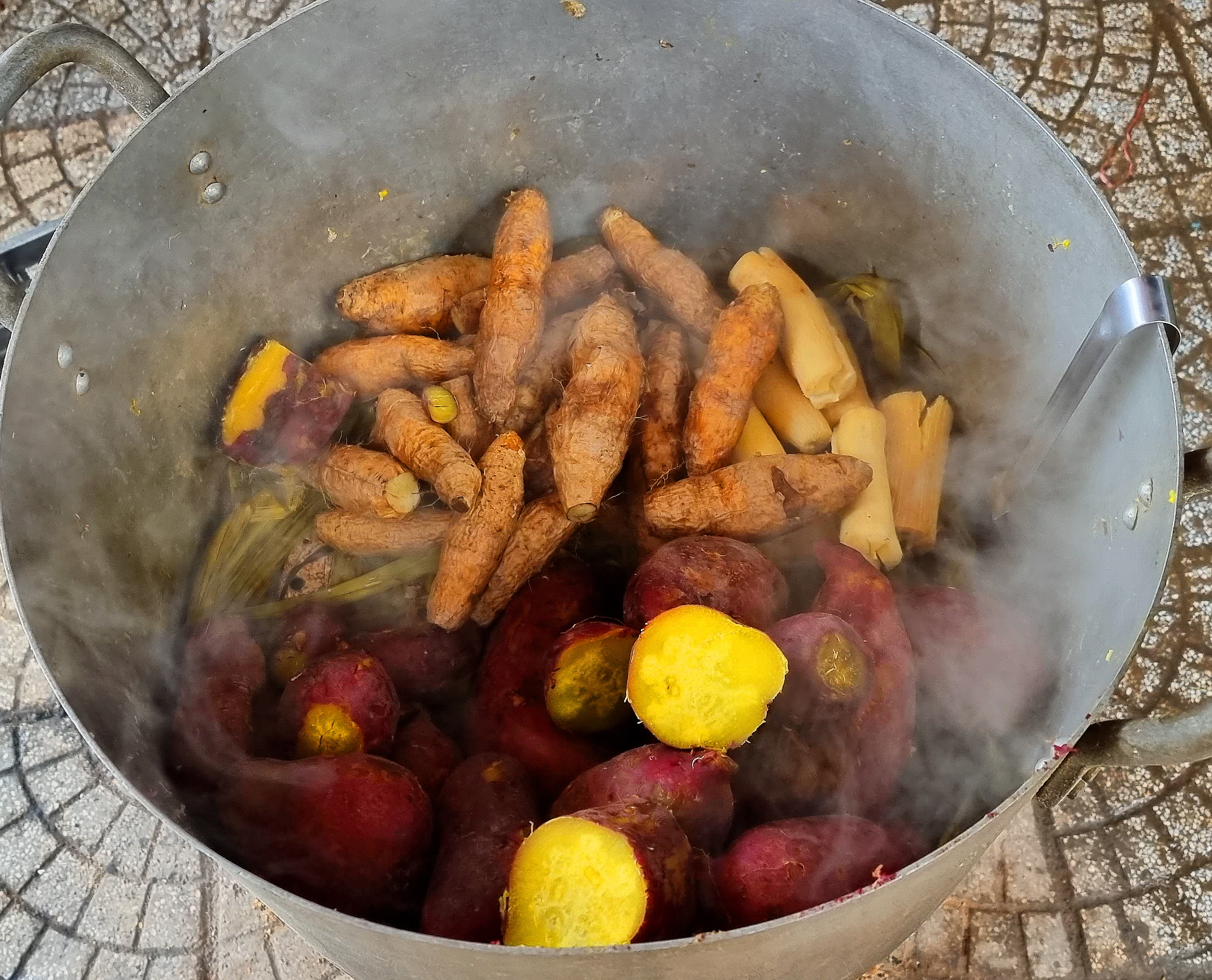 고구마를 삶거나 구워서 많이들 팝니다.