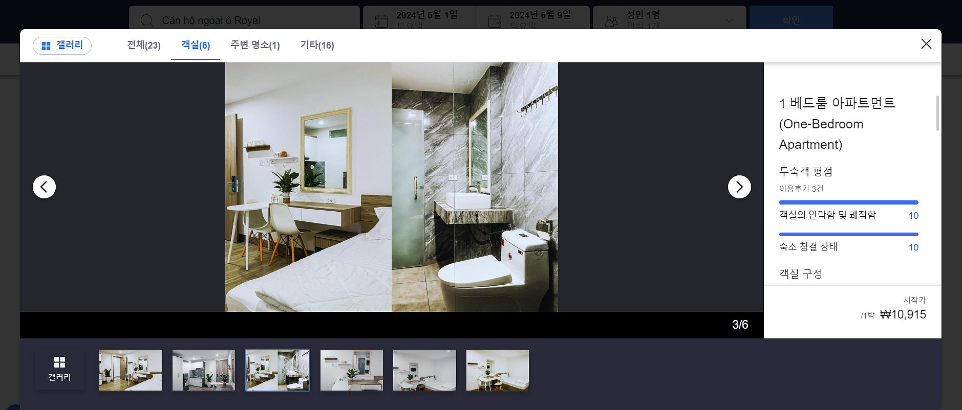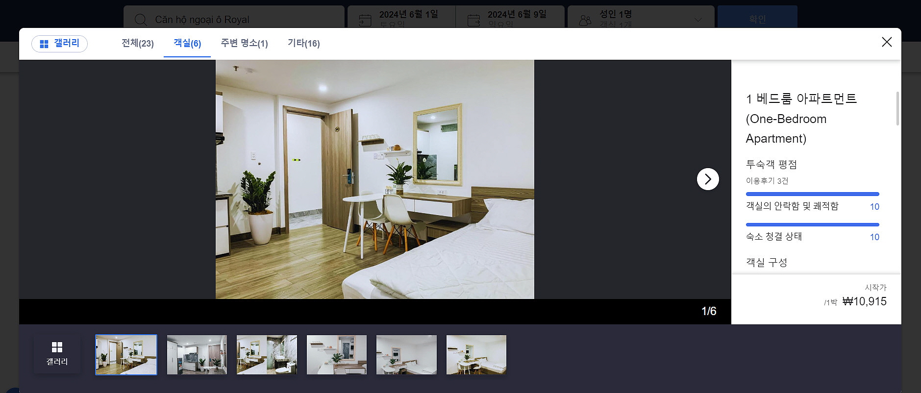 크릭을 하면 이렇게 객실 사진이 주르륵 뜹니다.