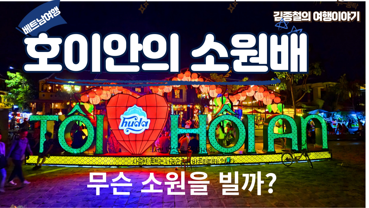 베트남 호이안의 소원배를 타고 소원 등을 켜서