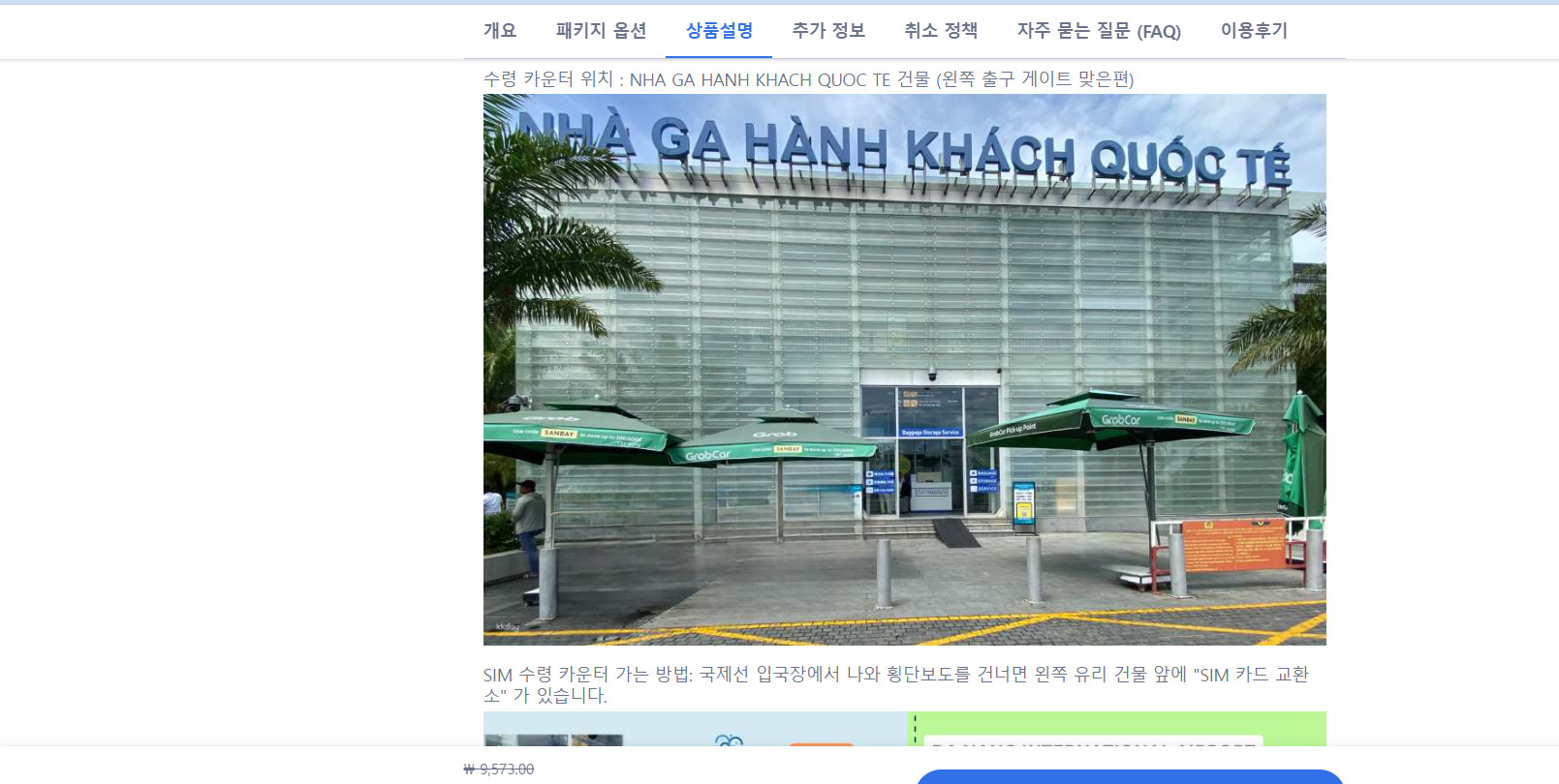예를 들어서 다낭 공항에서 유심을 픽업하는 시스템에 대해서 자세하게