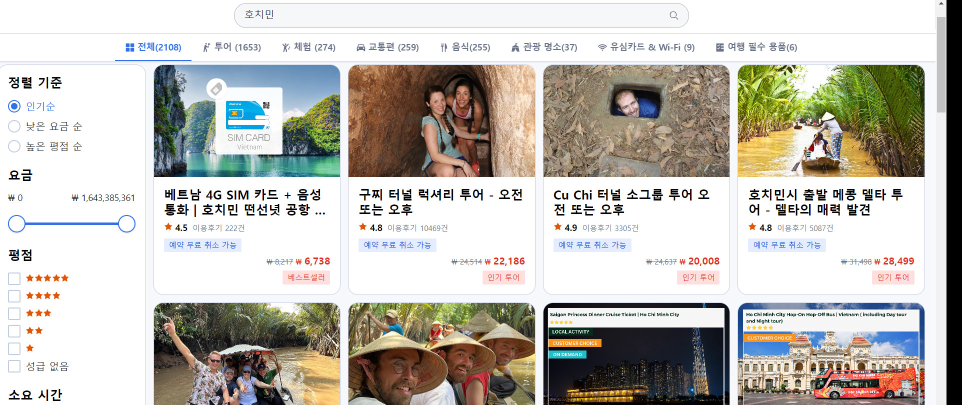 호찌민을 검색했더니 훨씬 가격이 착하네요.