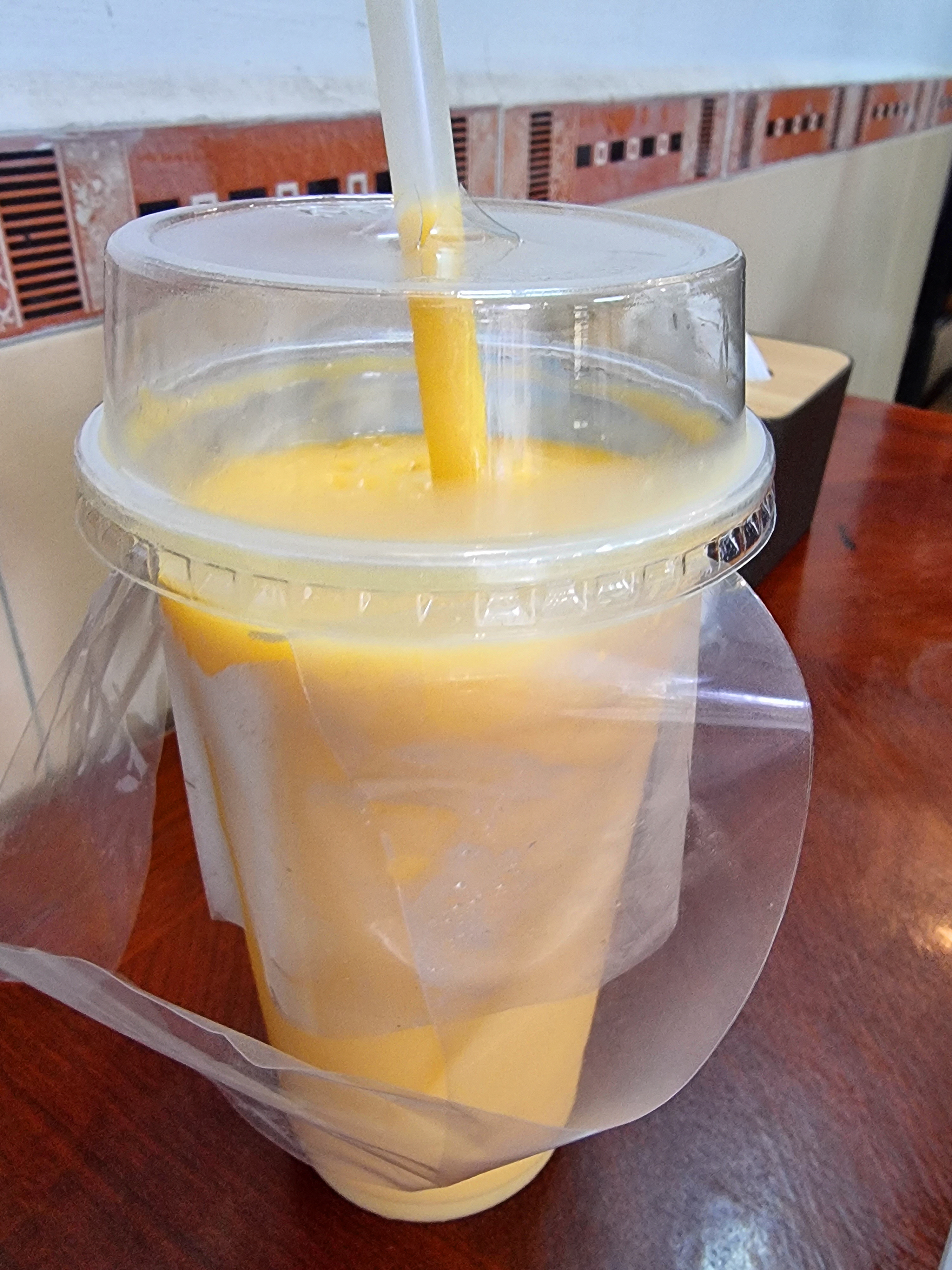 망고주스와 바나나 튀김을 입에 물고