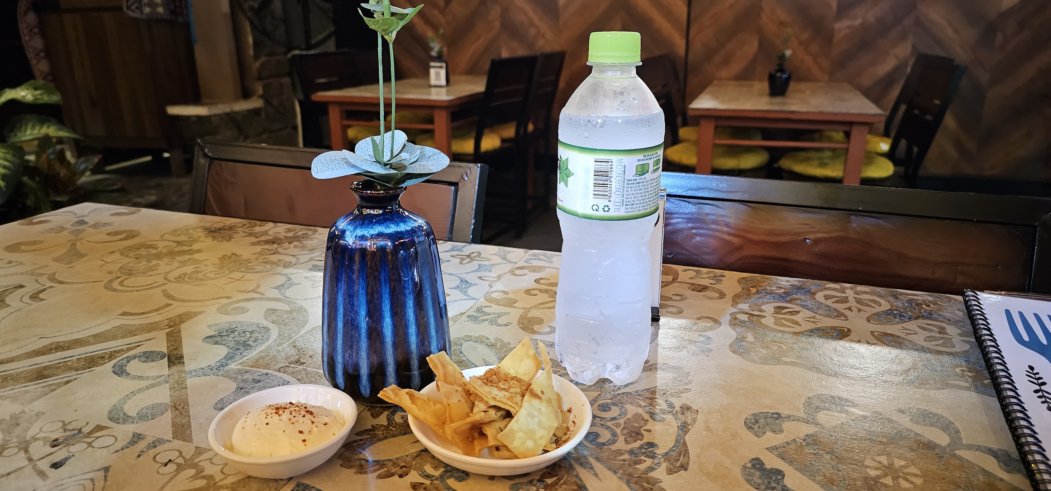 쌀튀김과 마요네즈가 나오는데 마요네즈 위에도 후추를 뿌렸네요.