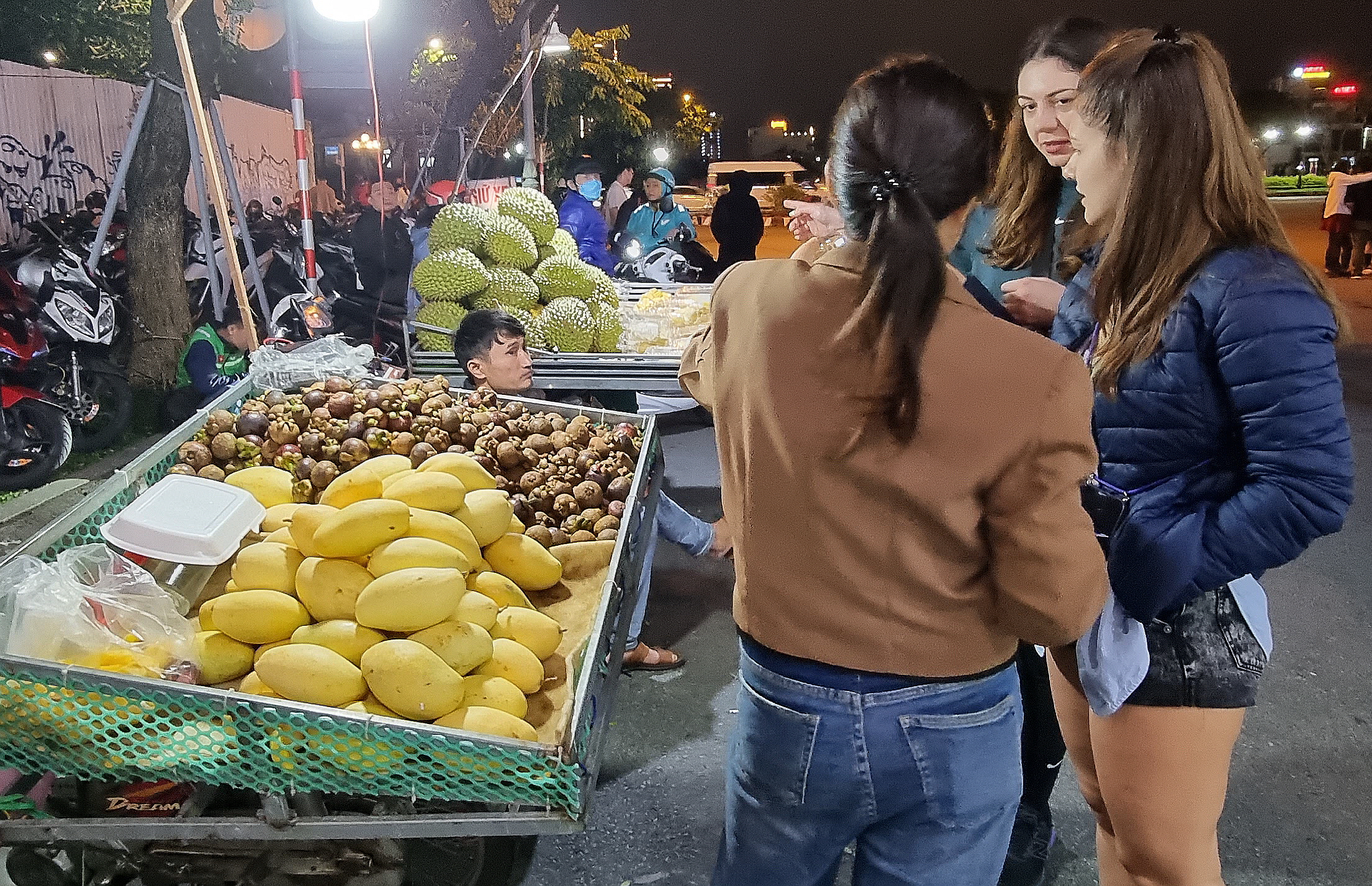망고스틴과 망고를 파는 리어카인데 "손님은 호구"라는 슬로건으로