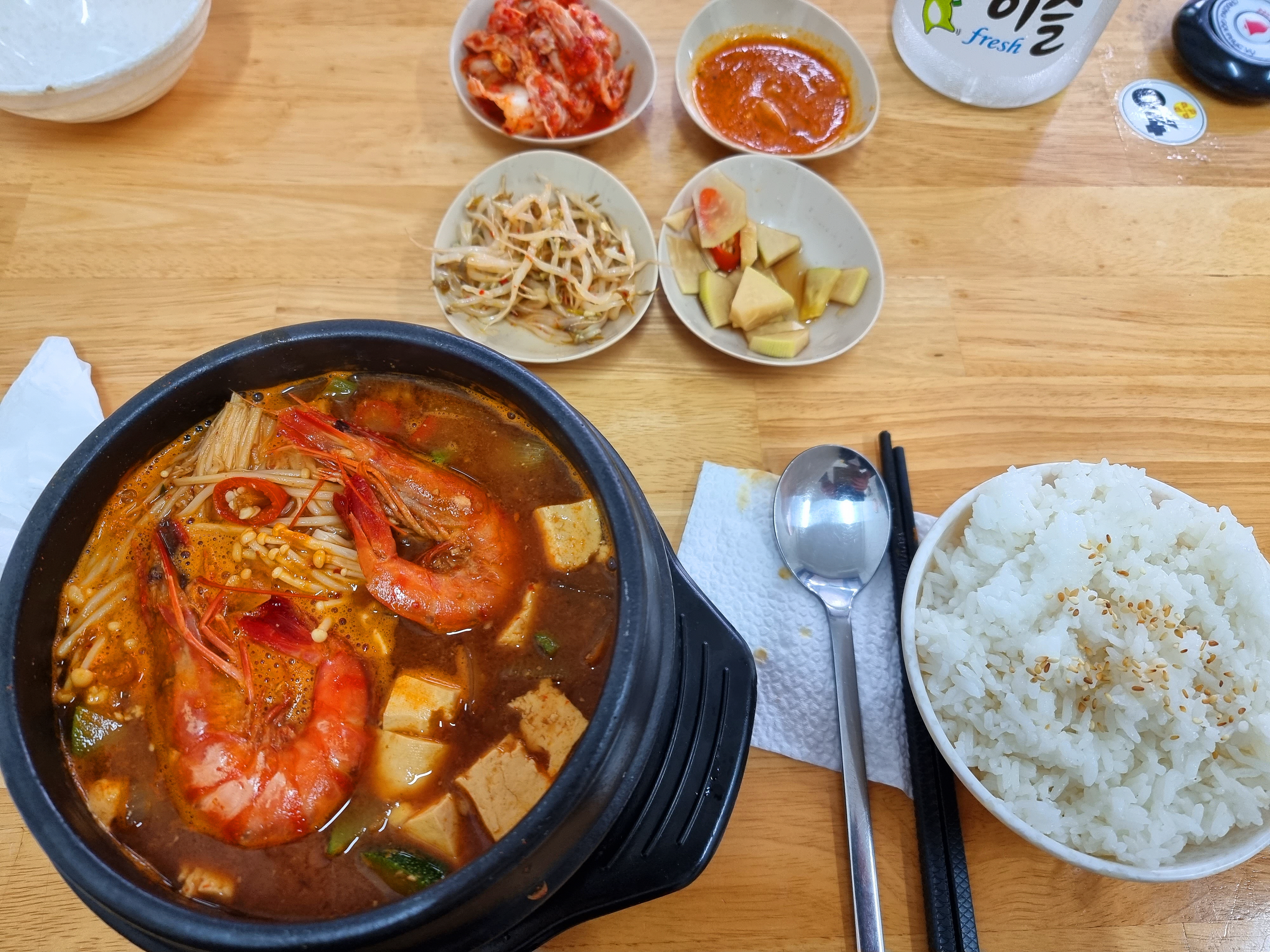저는, 해물 순두부를 주문했습니다.
