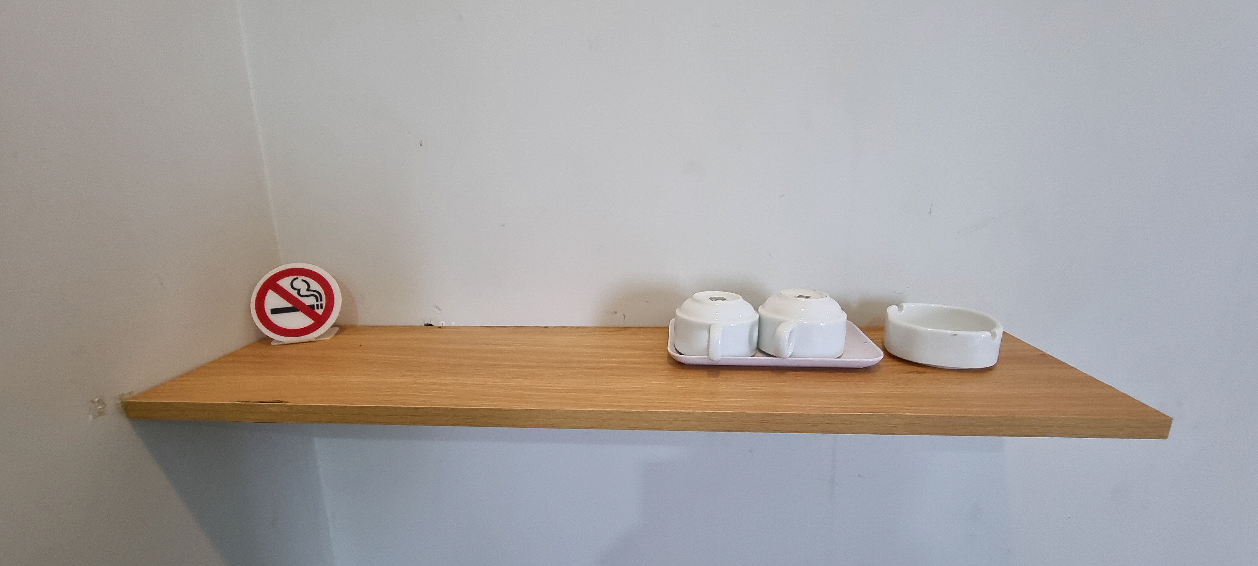 호텔 객실에 있는 커피잔 세트 선반입니다.