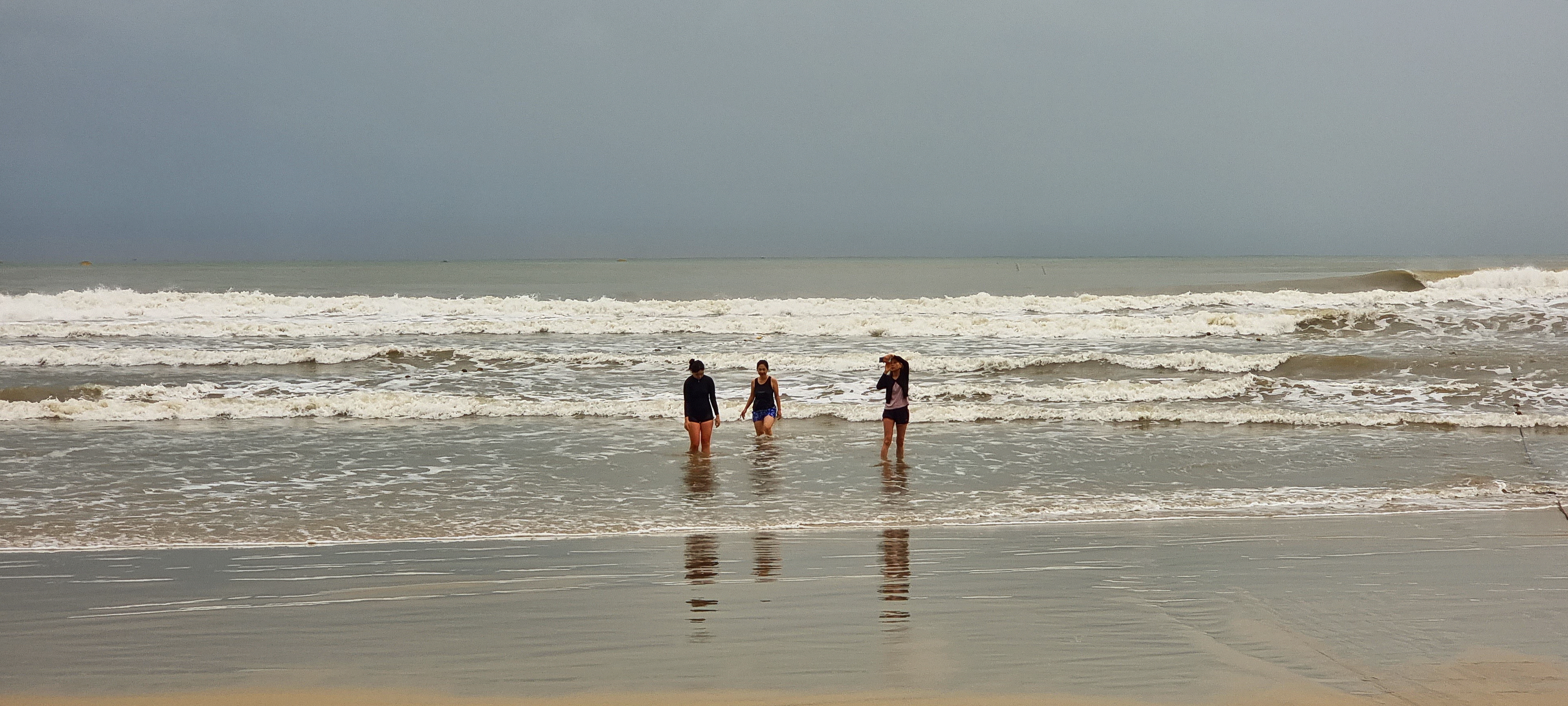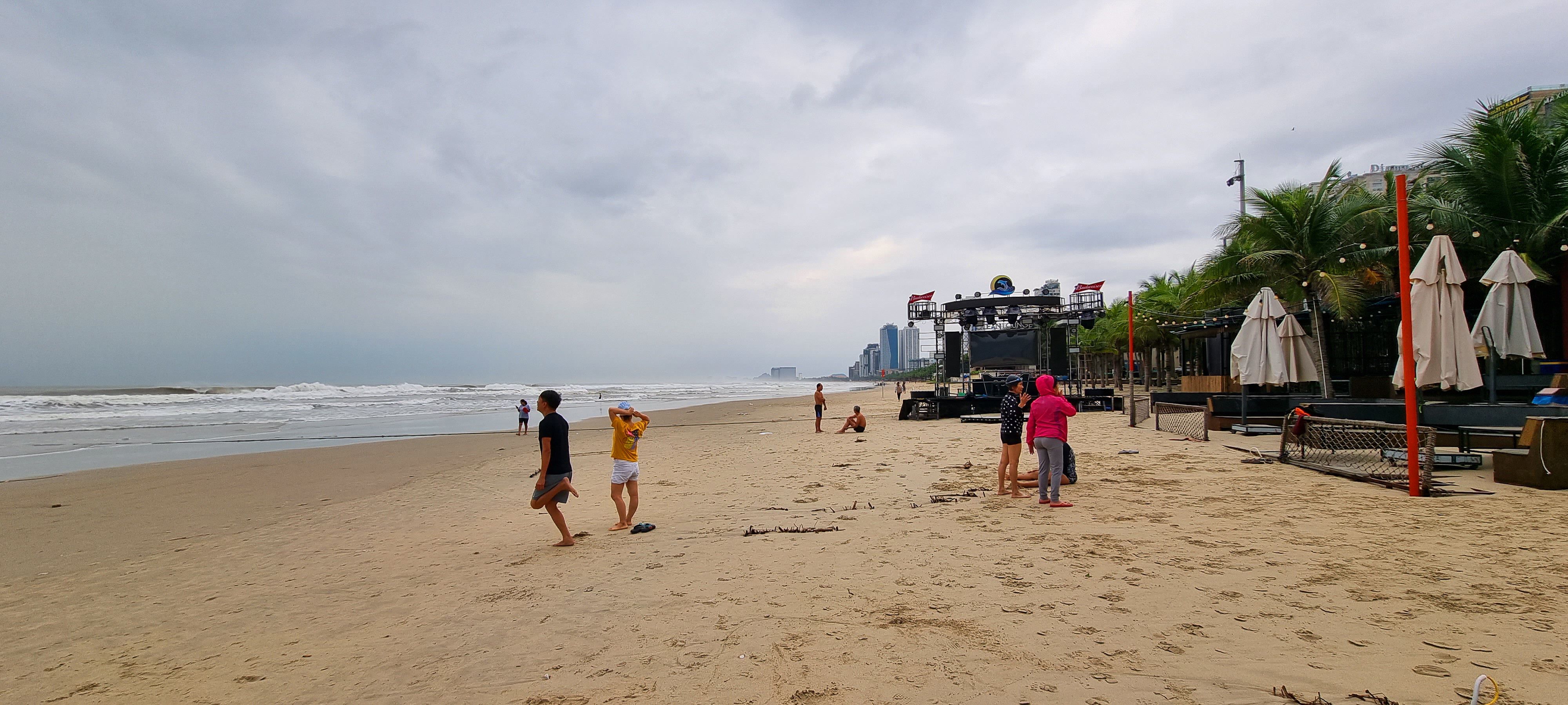 이른 아침에 백사장을 거니는 이들은 거의