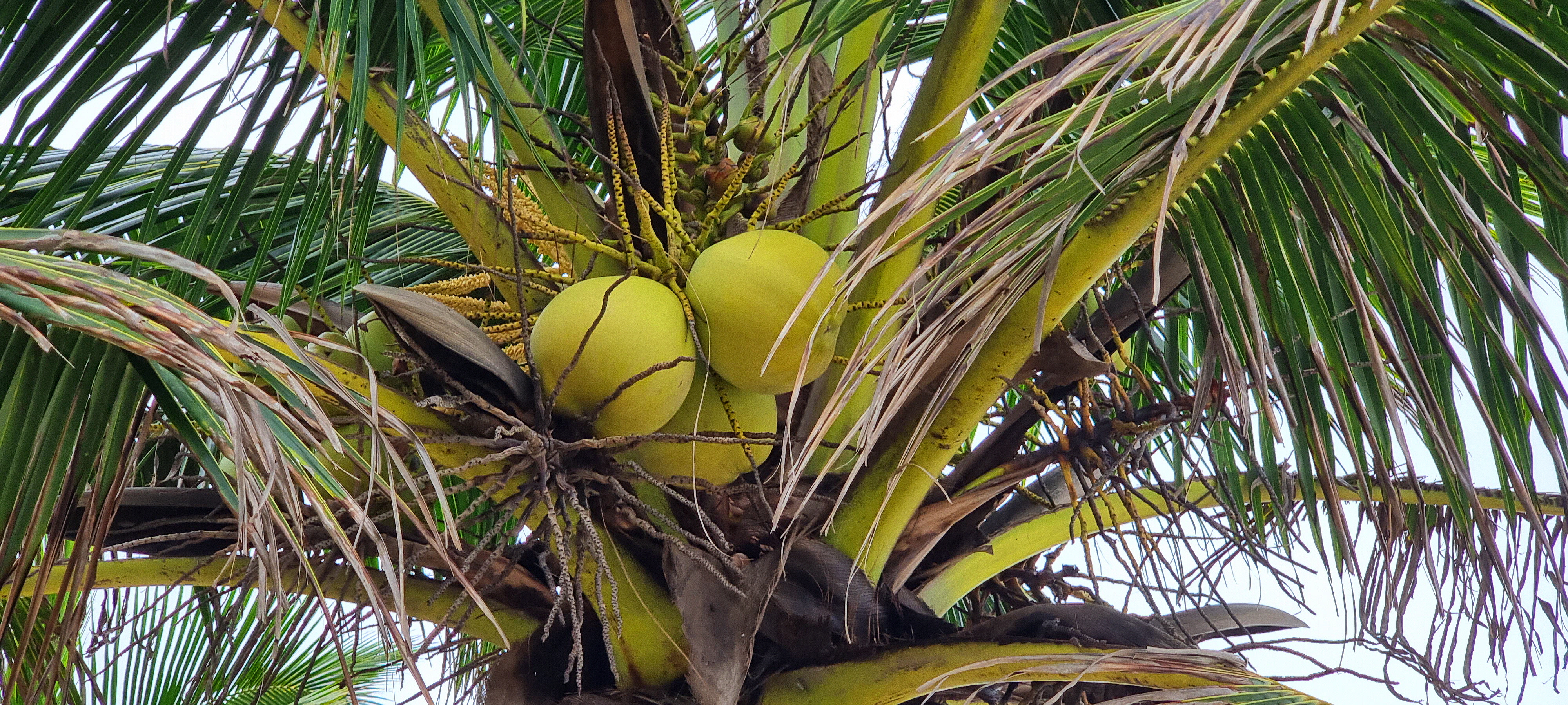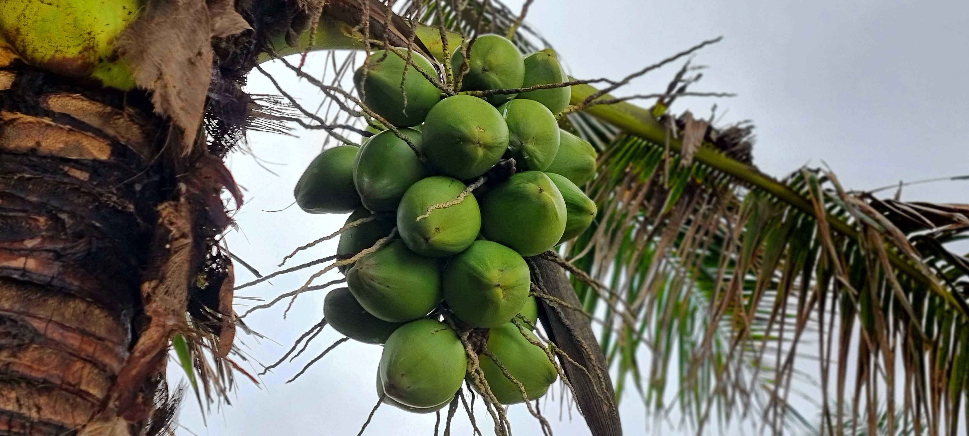 매달려 있는 코코넛을 보게 됩니다.