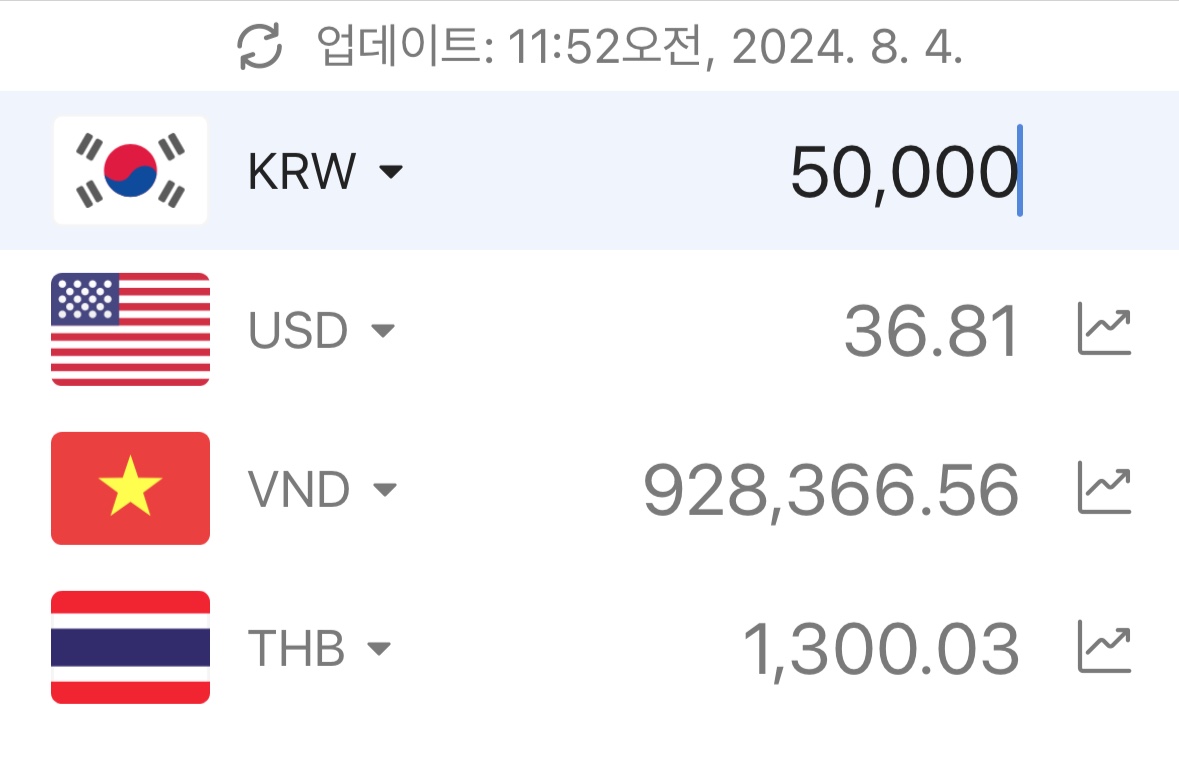 우리 돈 5만 원을 내밀면 928,000동을 내줍니다.