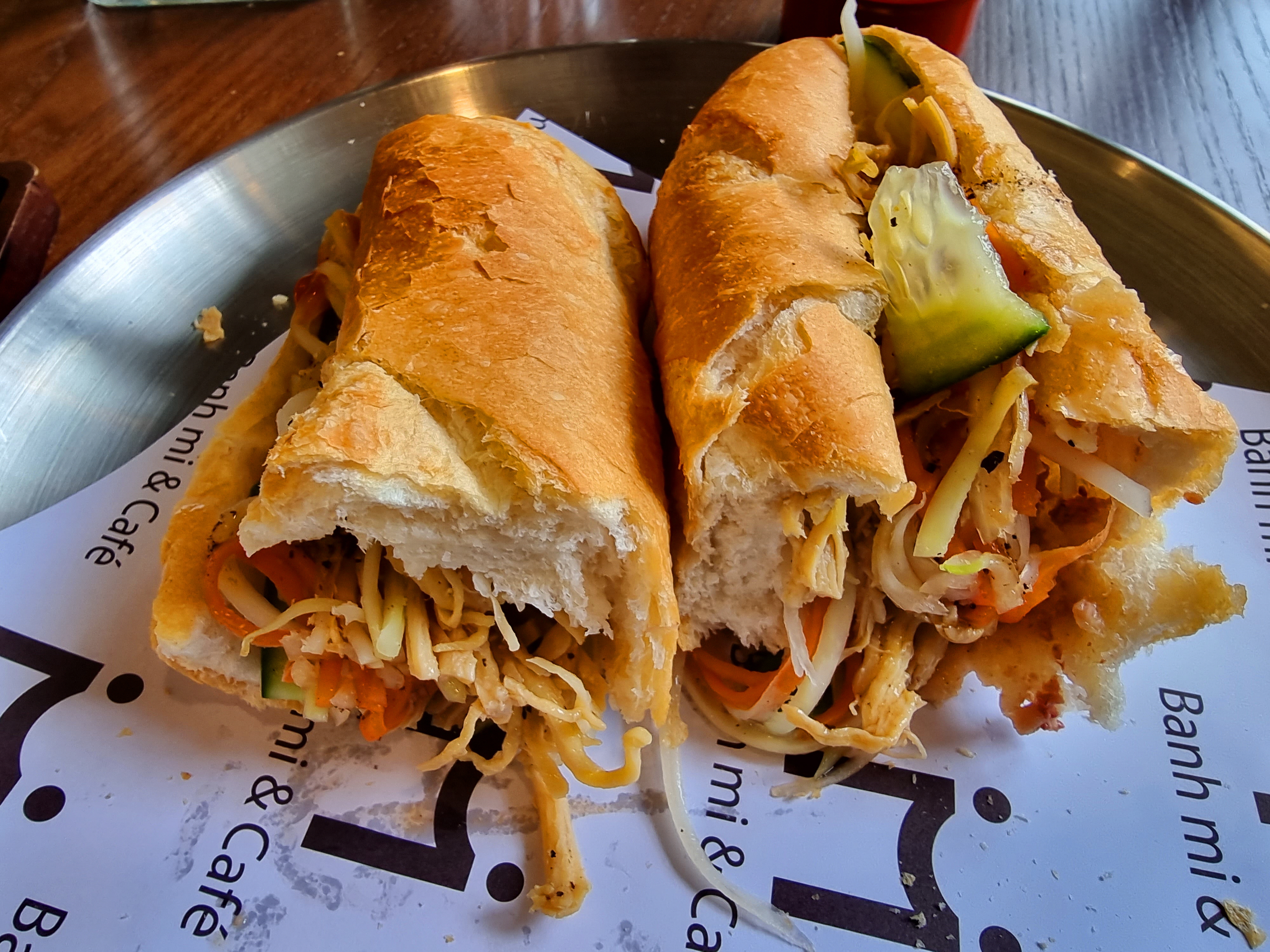 바게트 빵에 여러 다양한 토핑을 하여 만드는 반미는