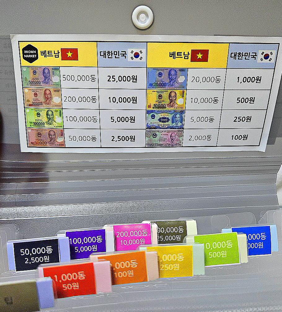 500,000만 동과 100,000동 화폐가 많이 쓰이는데