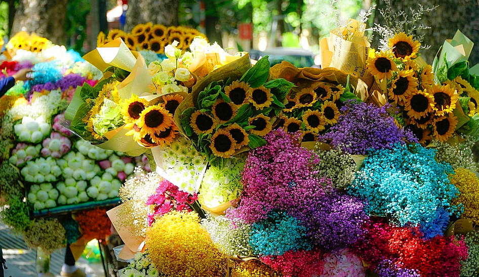 꽃을 가득 실은 리어카입니다.