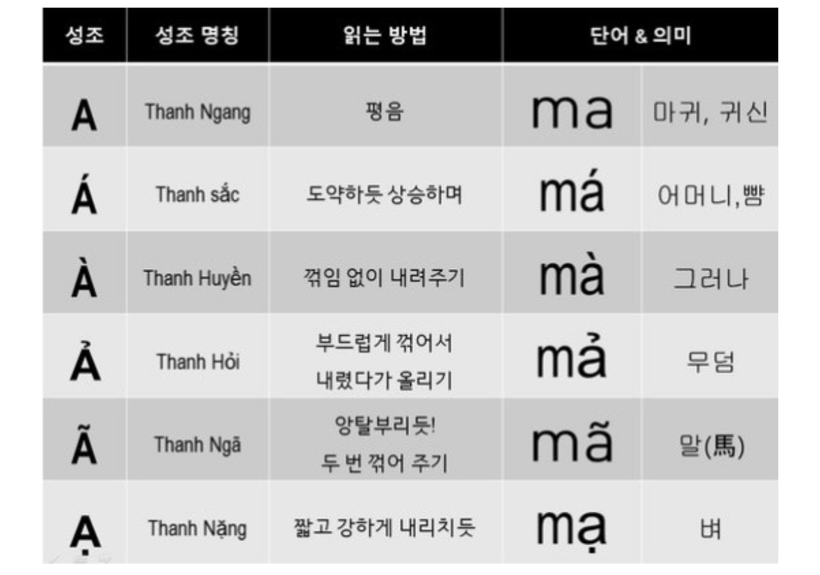 베트남어는 중국과 마찬가지로 6성 발음입니다.