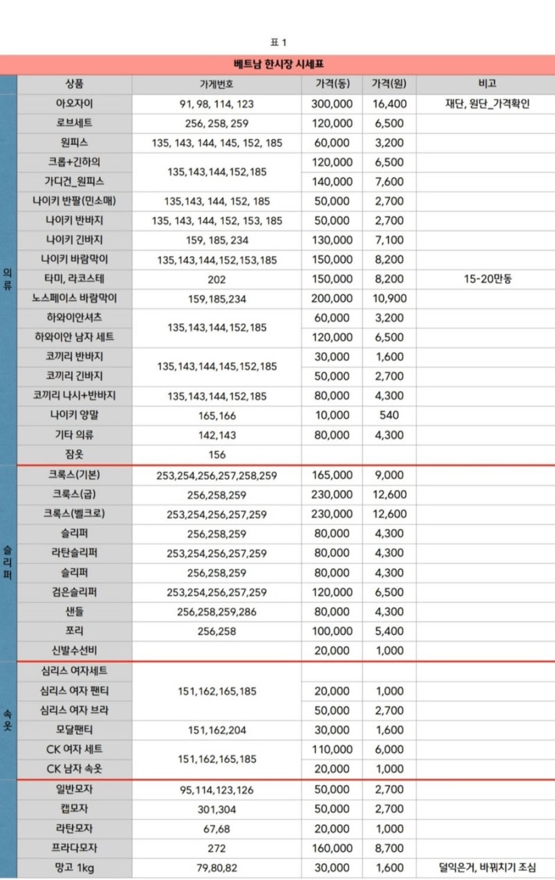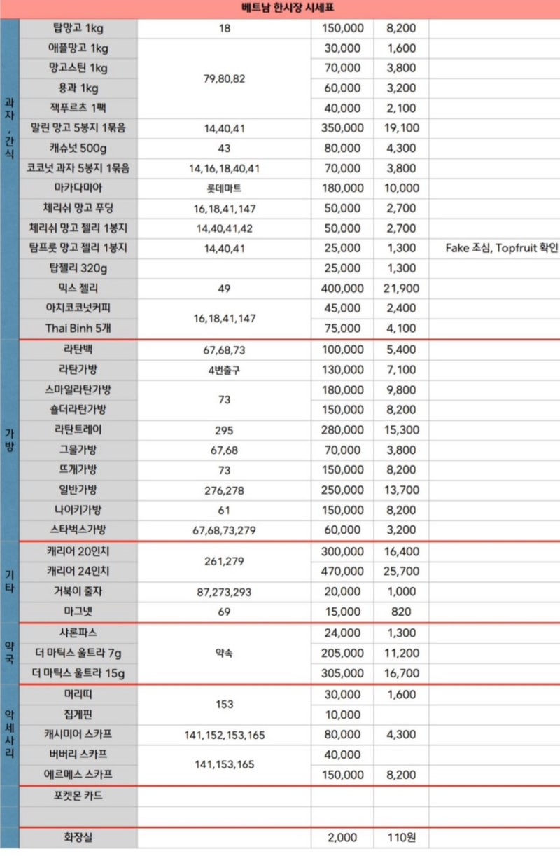 단위는 베트남 화폐 "동"이며 뒤에서 "0"을 하나 빼고