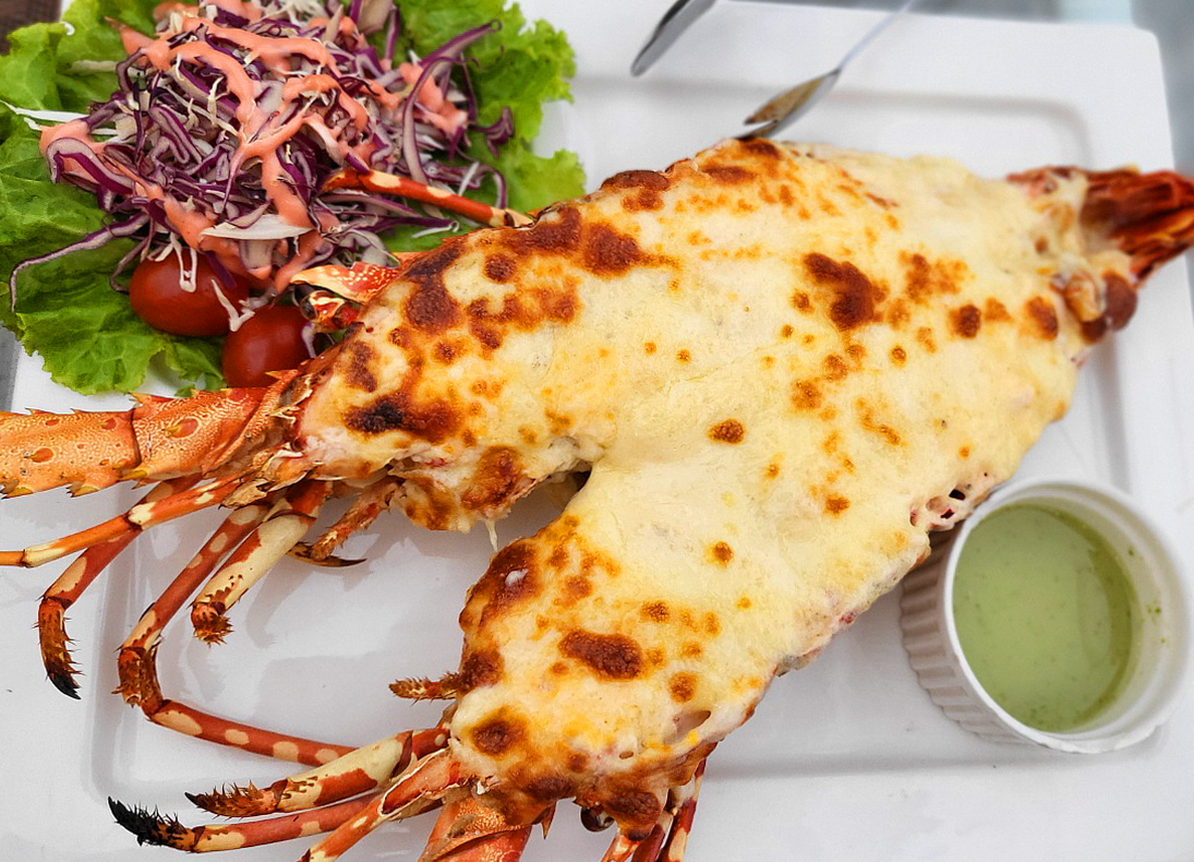 반을 갈라서 치즈를 넘쳐 나도록 구워 나온 게는