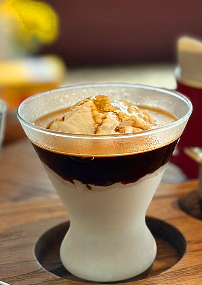 계란 노른자를 마구 저어서 커피와 함께