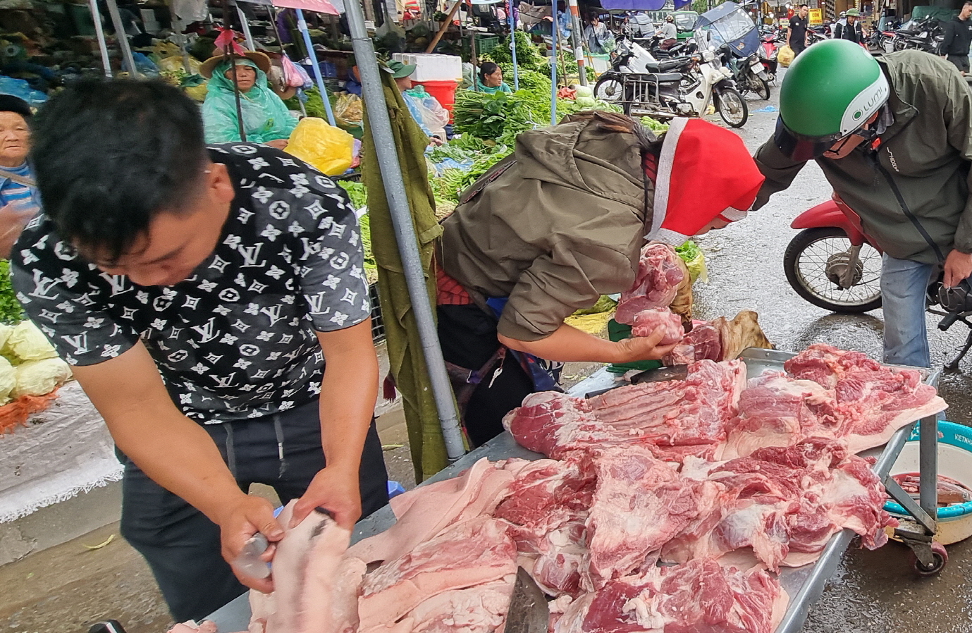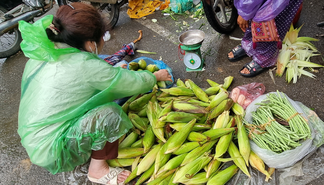 자릿세로 인해 시장 건너편에서 야채들을 파는