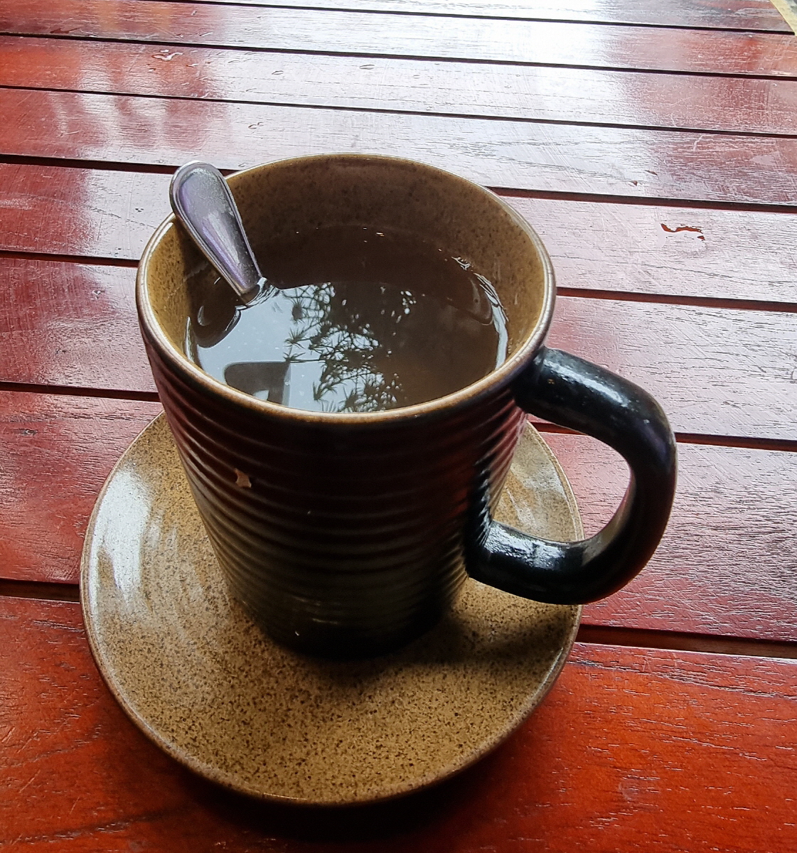 생강 반 개를 온전히 잘라서 끓여 내와서
