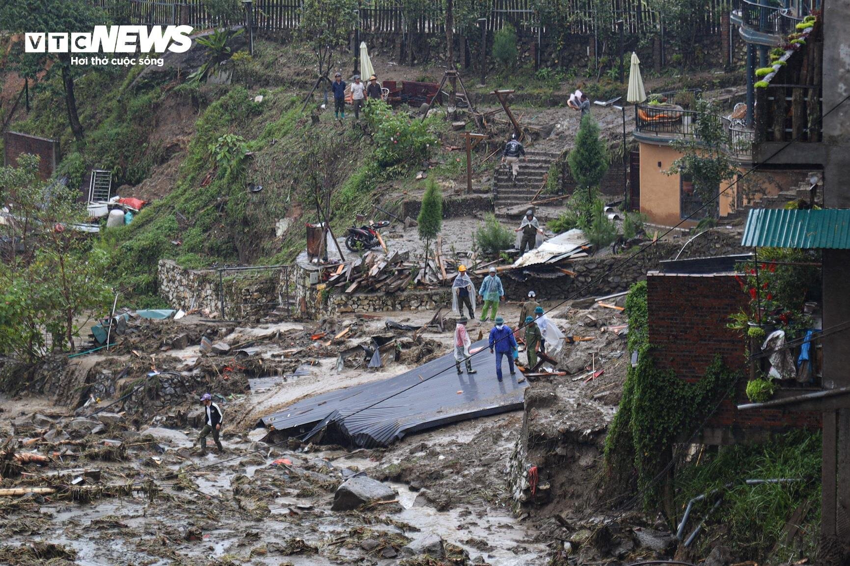 산사태 난 동네에 한창 복구 작업을 하고 있다는