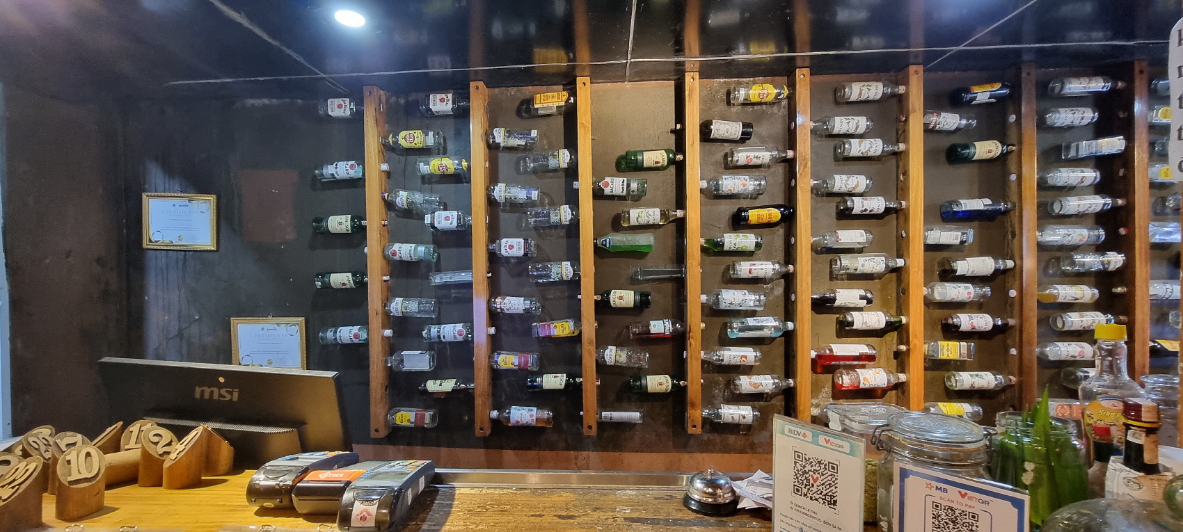 각종 술병들이 벽면을 가득 채우고 있어