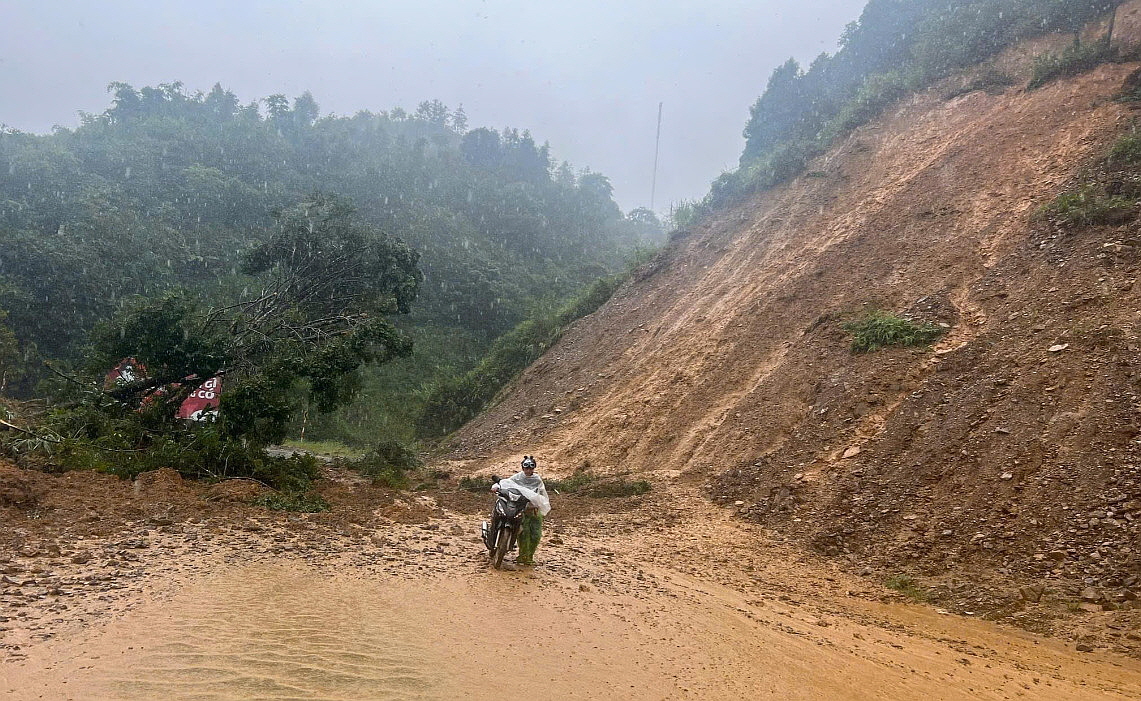 산사태가 나서 도로가 막혔네요.