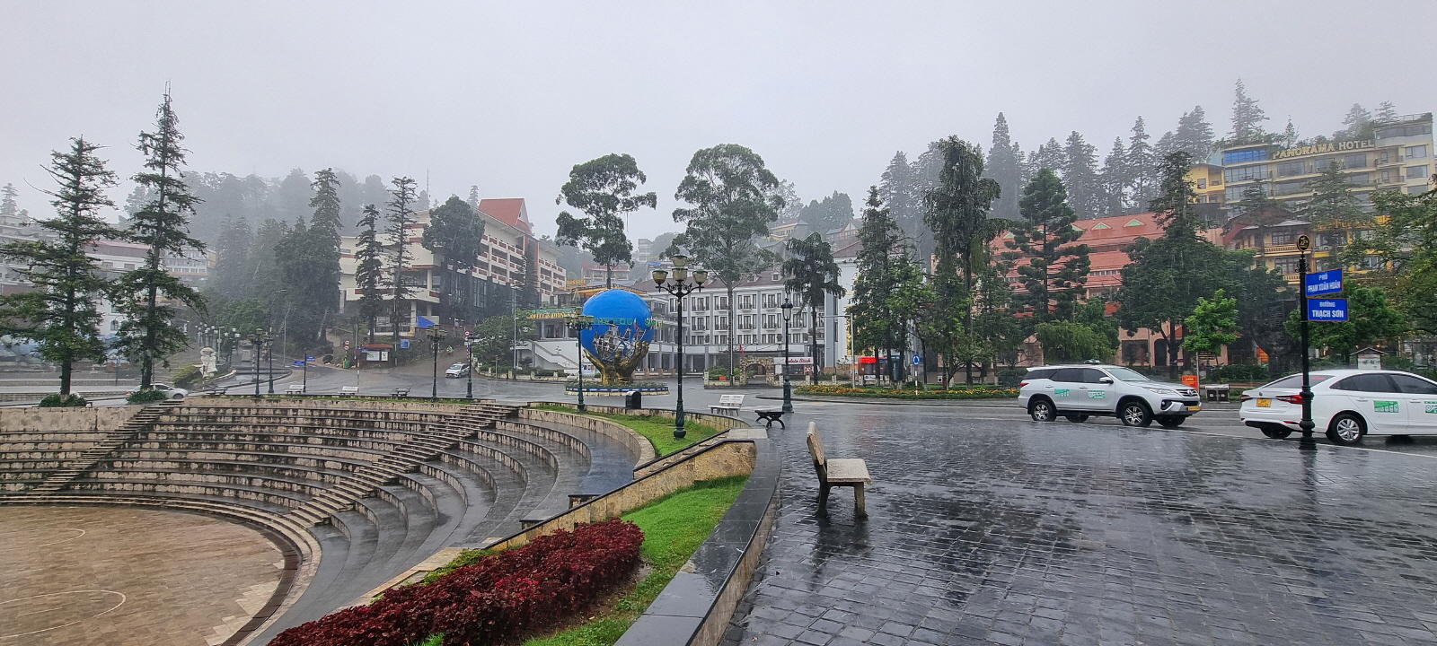 사파의 비 내리는 풍경과 시내로 가는 지름길 언덕길