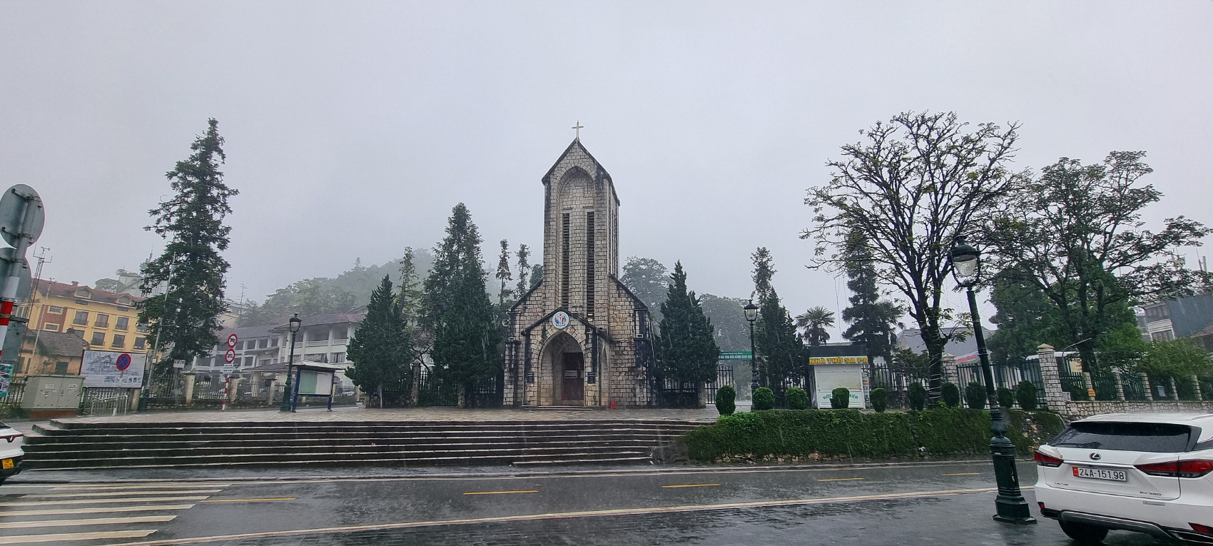 사파의 유일한 성당인데 뒤에는 함릉산으로