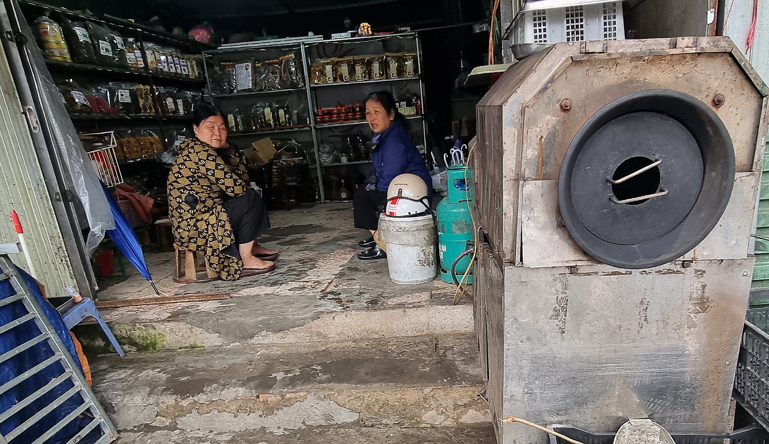 우측 드럼통은 밤을 굽는 통입니다.