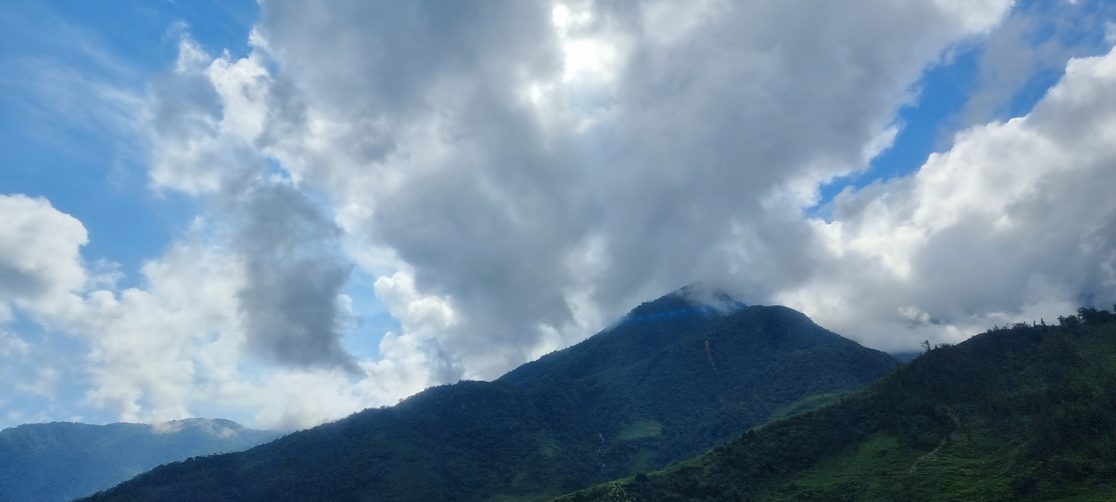 산 머리에 머물러 있는 구름모자는
