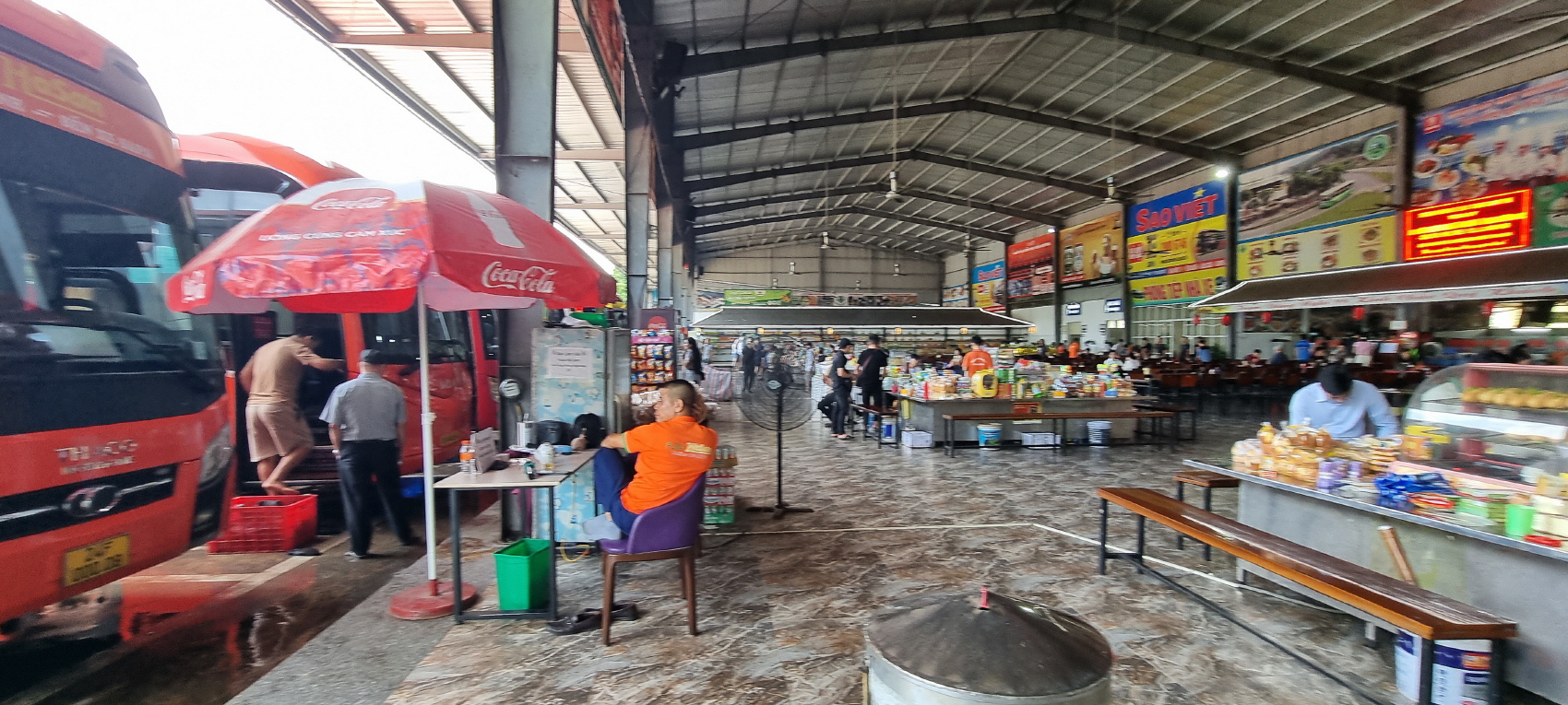 잠시 들러서 버스 정비도 하고 화물도 싣네요.
